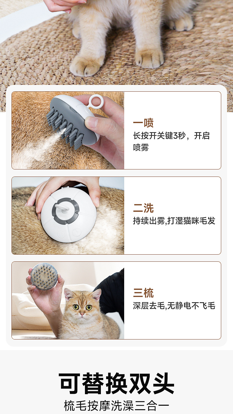 跨境猫梳子喷雾猫毛梳猫咪梳毛用狗毛宠物洗澡刷去浮毛神器狗狗用