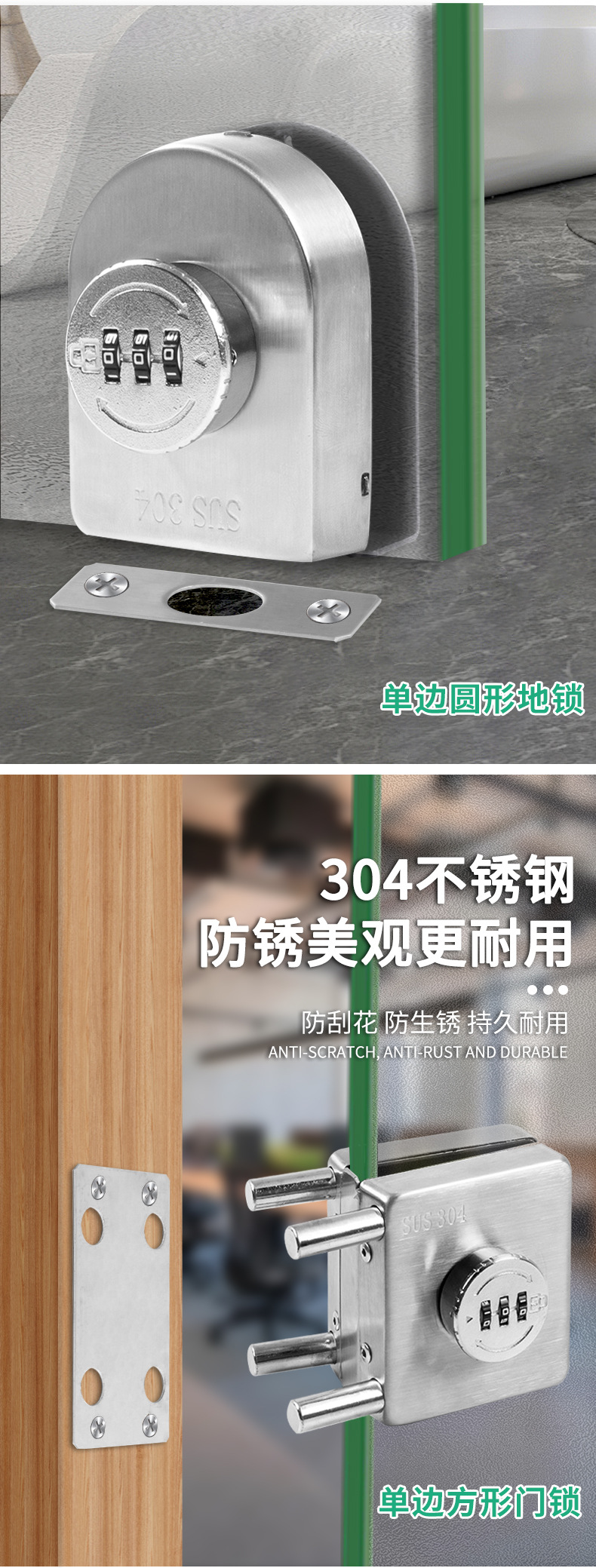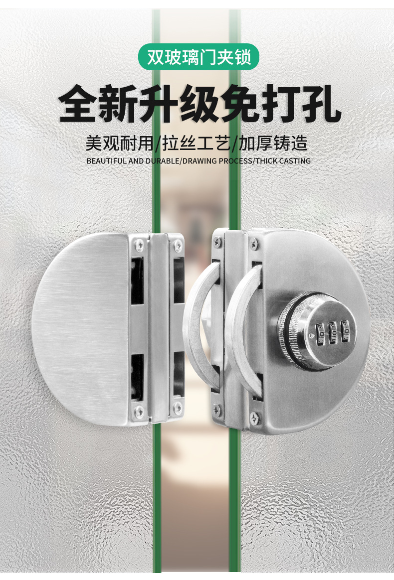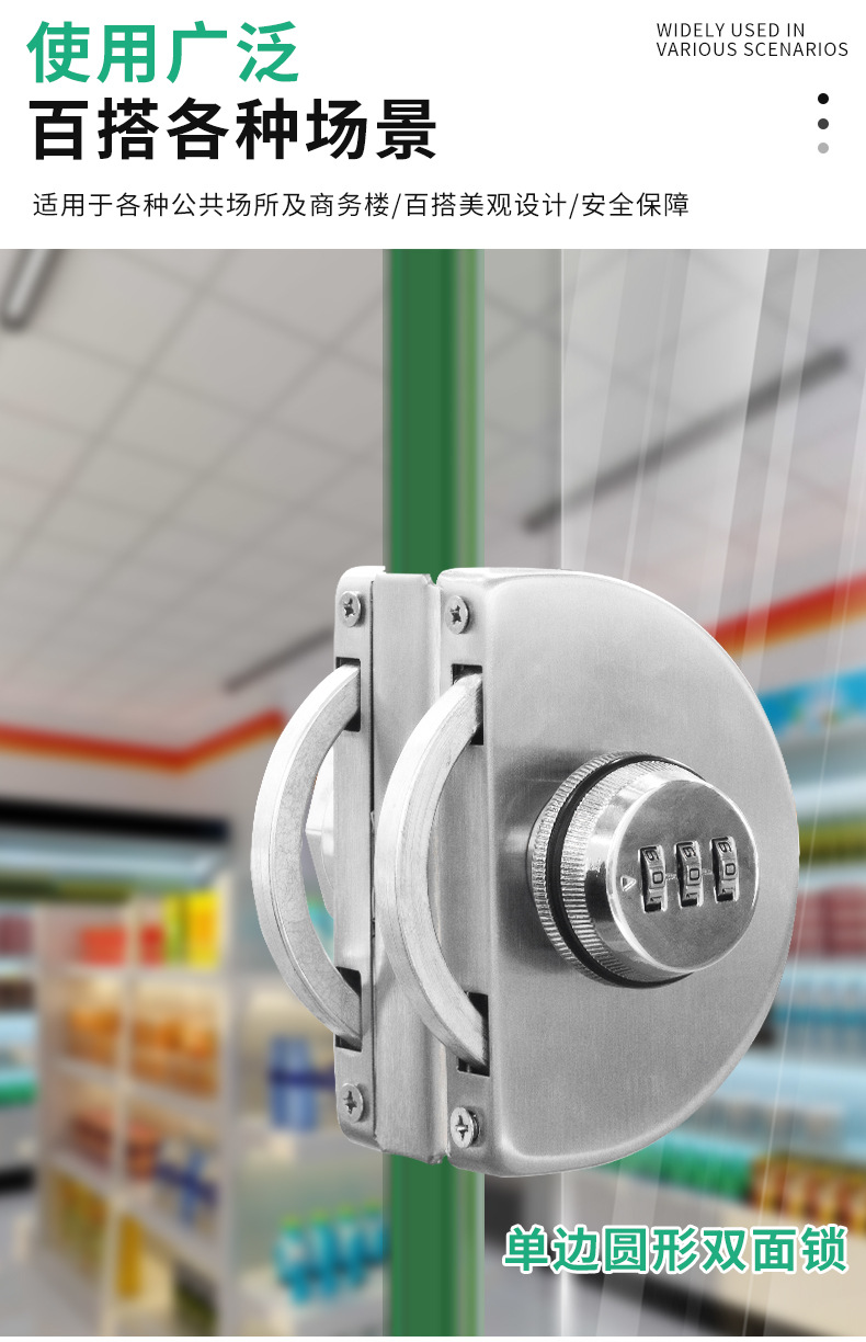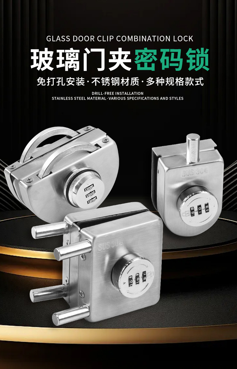 ガラスドアロック押し引きガラス暗号ロックダブルドア穴なしステンレス店舗中央ロックシングルドアダブルドアロック
