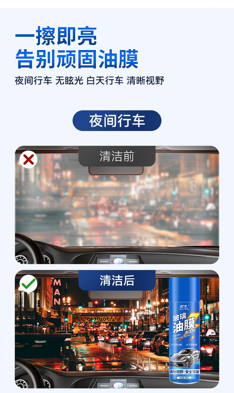 油膜除去剤ガラスフロントガラス自動車風防強力効果油膜多機能泡洗浄剤