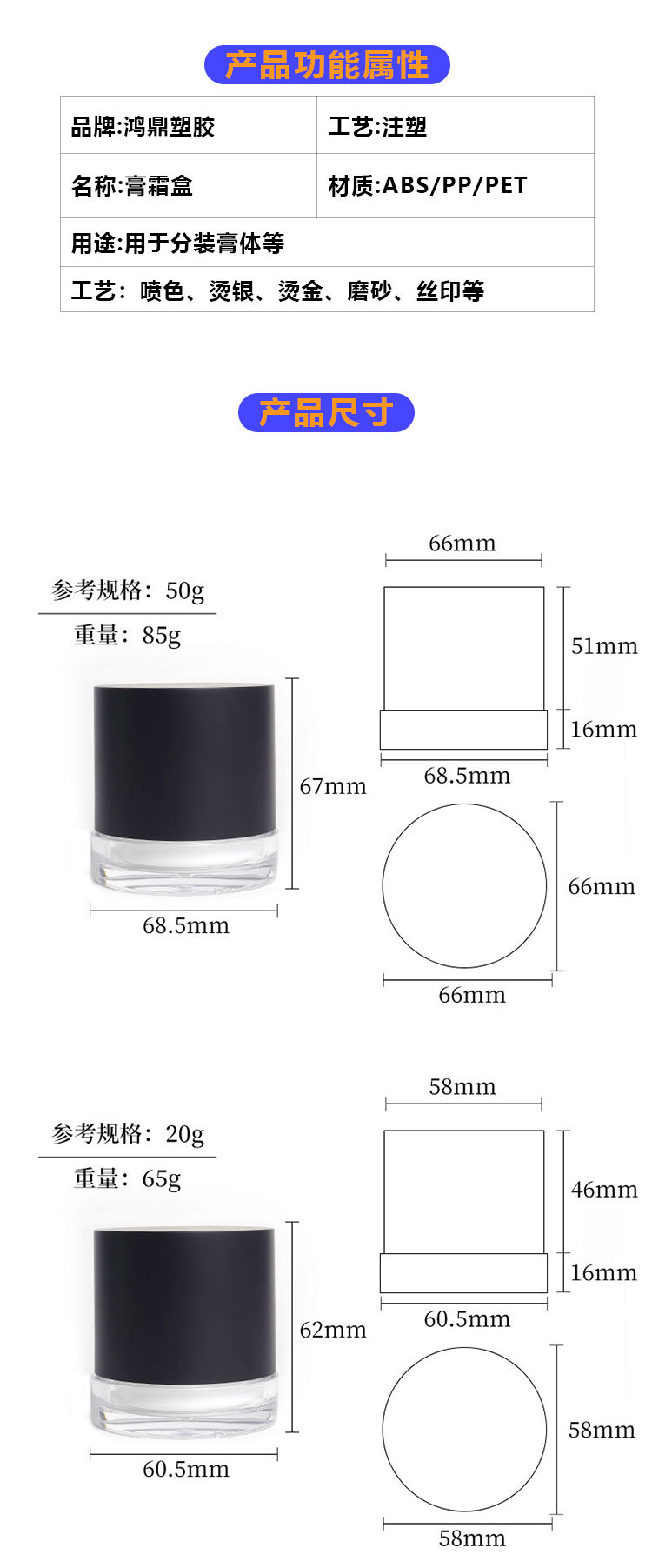新款50g高口膏霜瓶化妆品面膜膏瓶发泥瓶面膜贴贴霜瓶睡眠面膜瓶