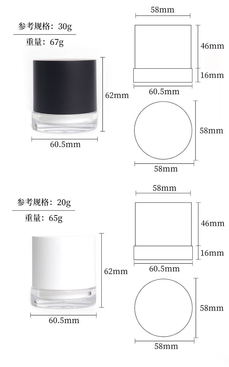 50g高蓋クリーム瓶クリーム瓶泥膜瓶30gマスク瓶化粧品ガラス透明瓶