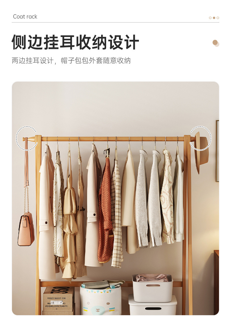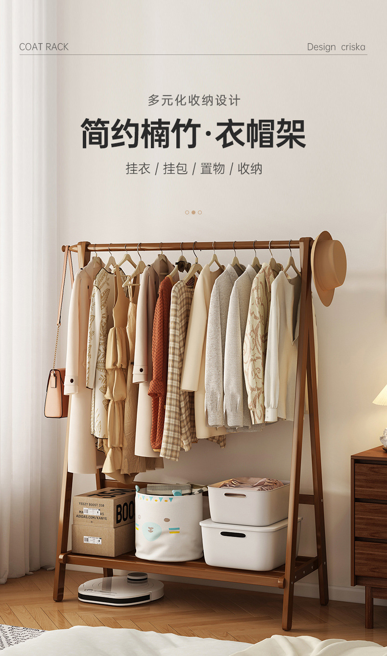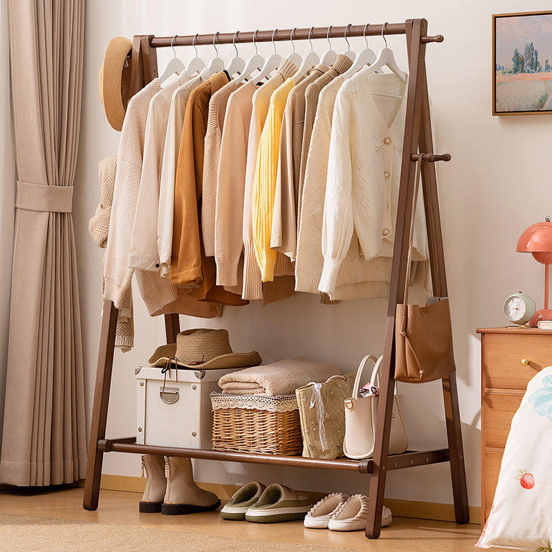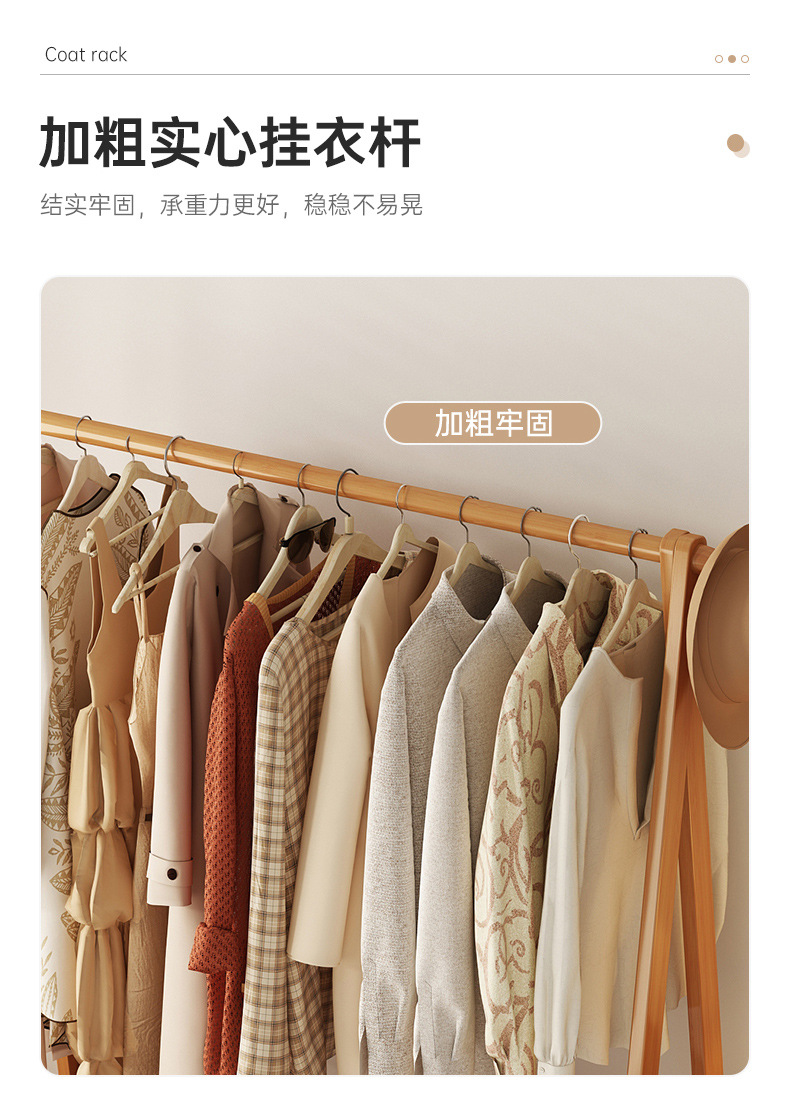 实木衣架落地卧室衣帽架家用晾衣架木质挂衣架室内挂衣服置物架子