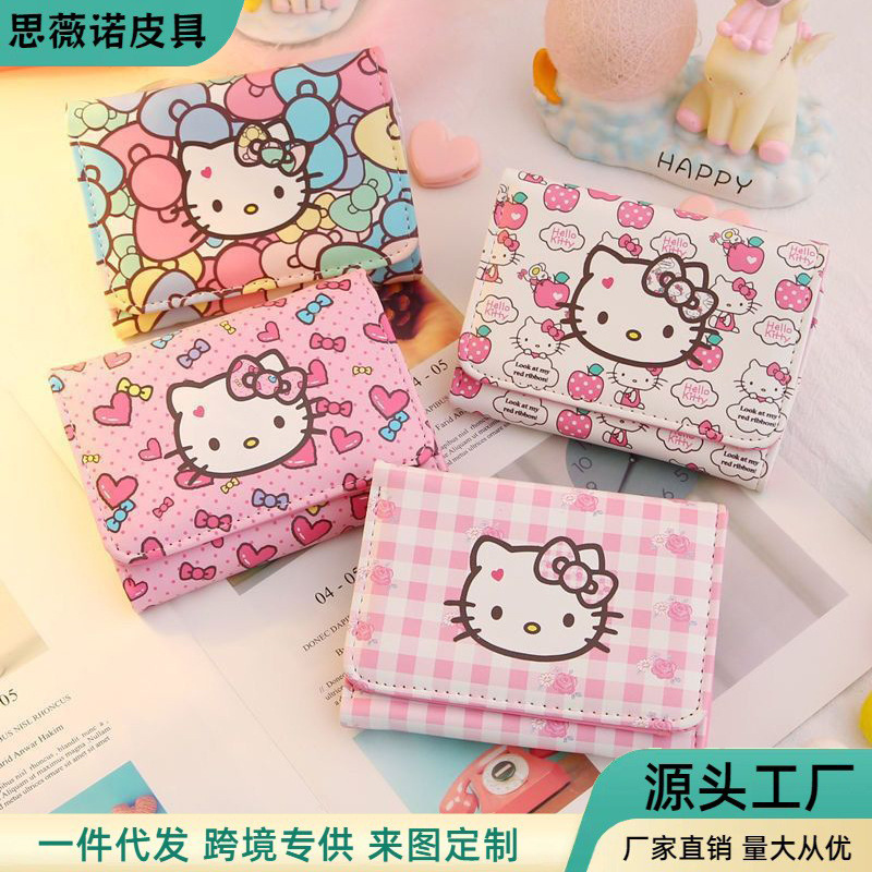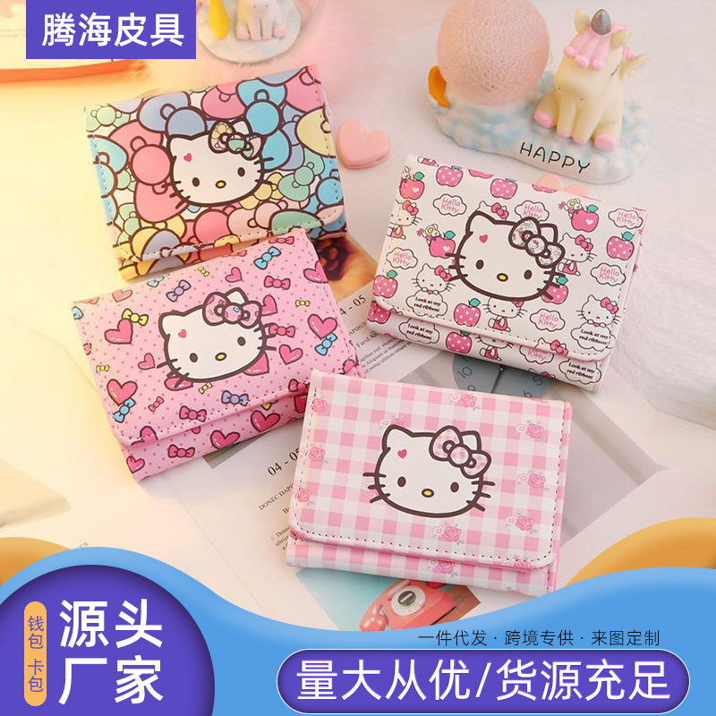 かわいい日本の漫画財布女性ショートスタイル小さな新鮮なガーリーハート折りたたみ子供プリンセスハローキティ小銭入れ