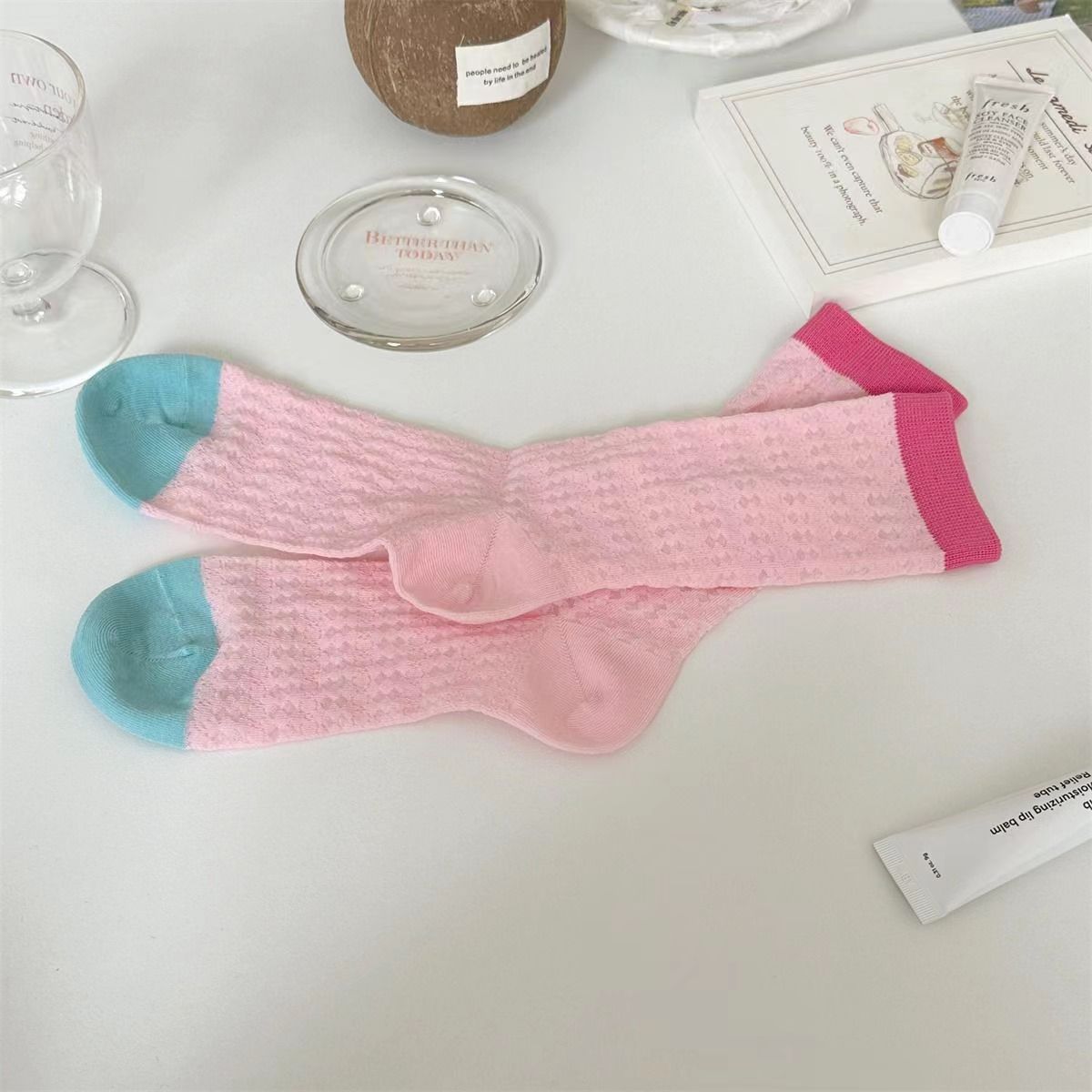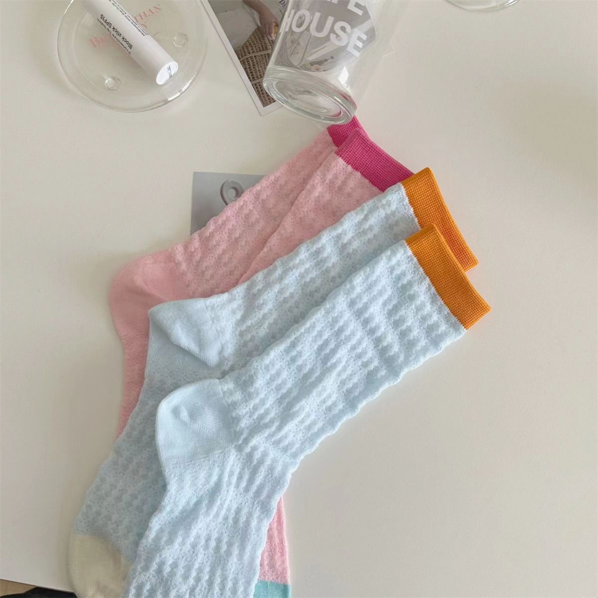 タイダイグラデーションソックス レディース ミドル丈 四季対応 秋冬 インス風 カレッジスタイル シンプル キャンディーカラー スポーツソックス インス風