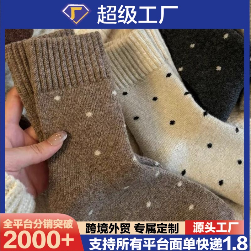 保暖秋冬季加绒加厚新款波点毛圈中筒可爱百搭复古堆堆袜袜子女款