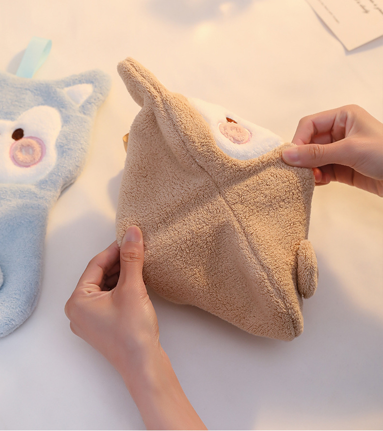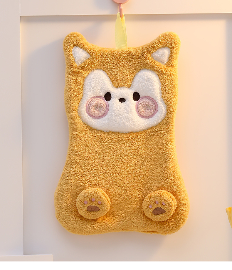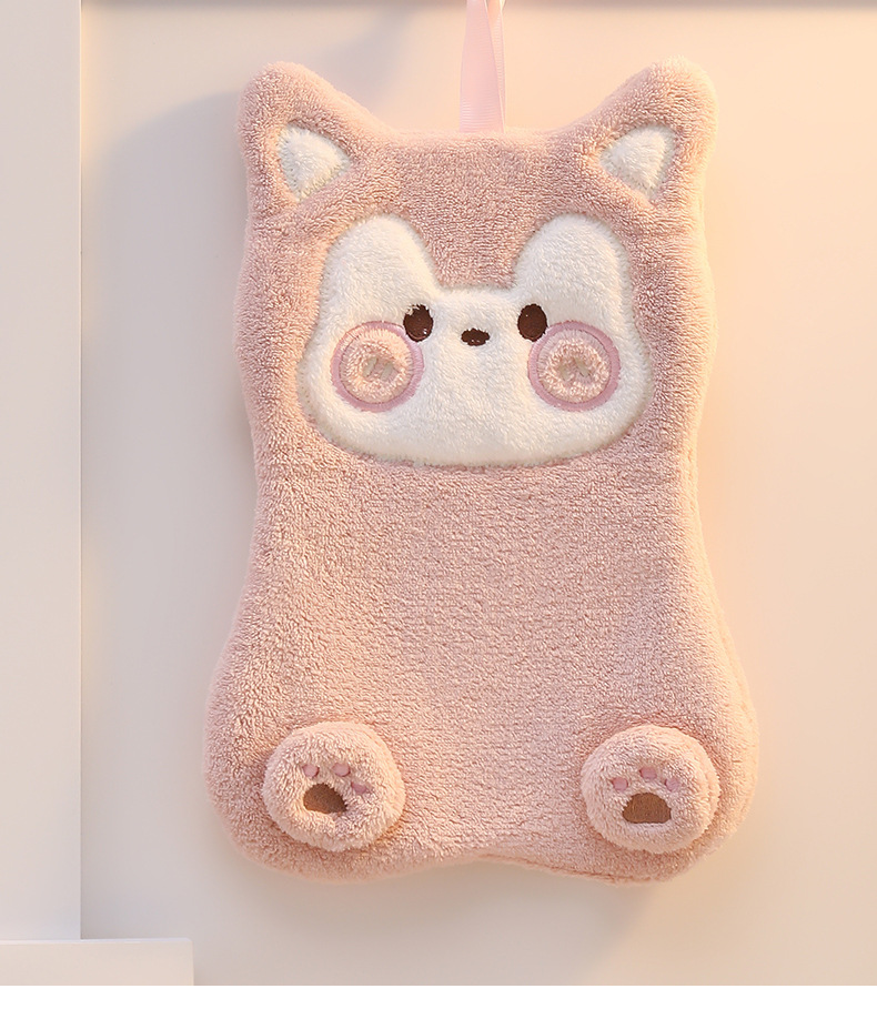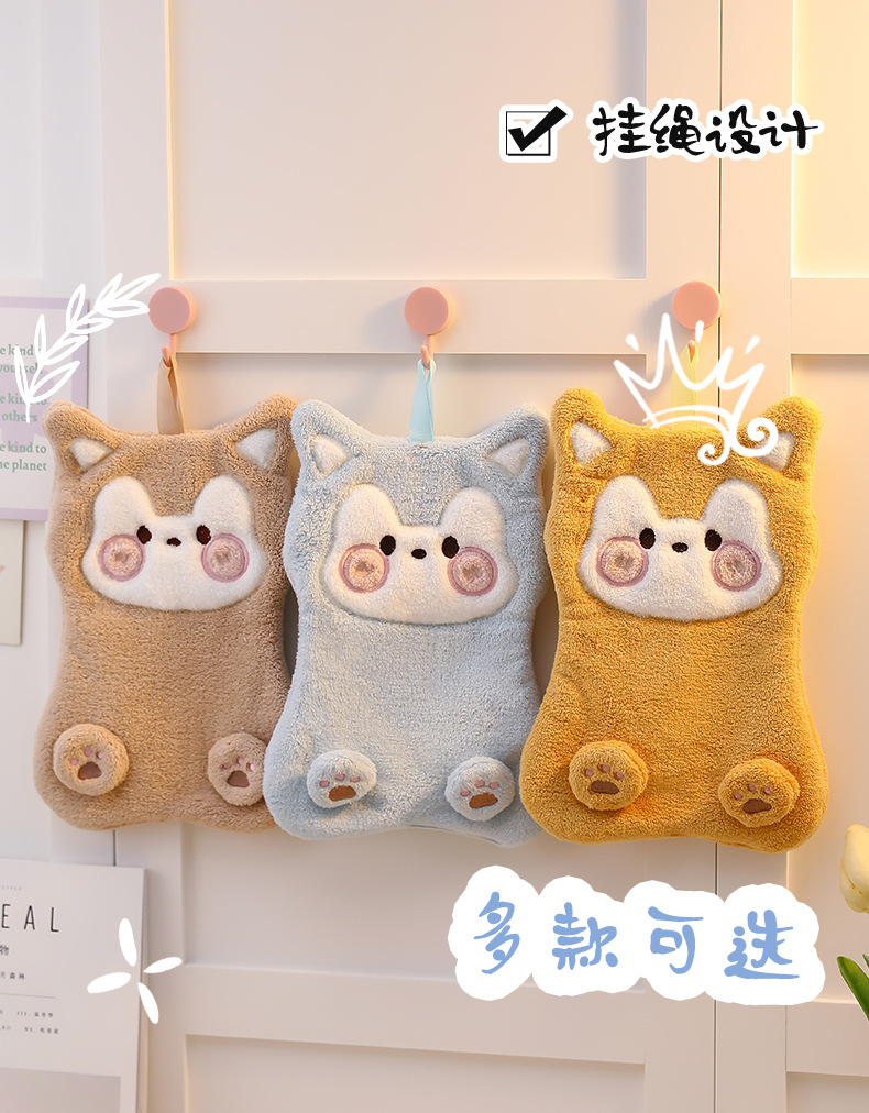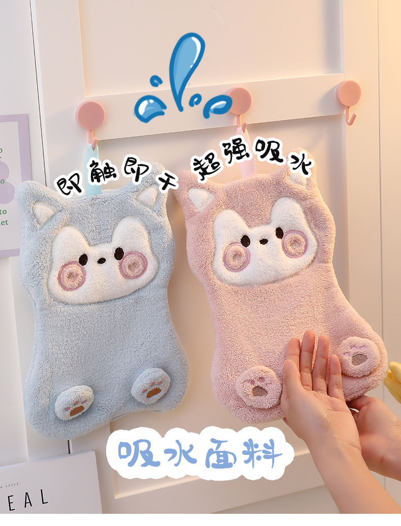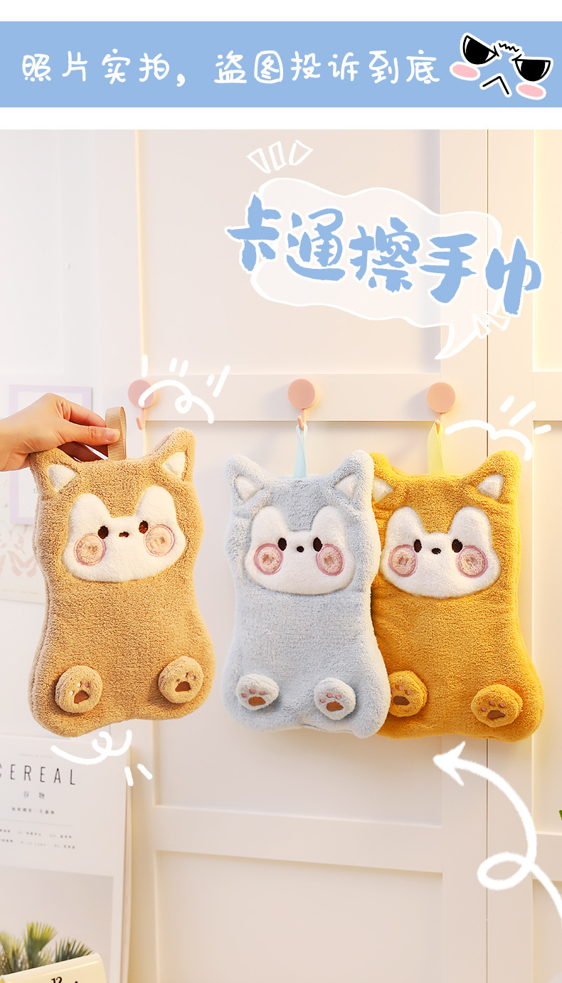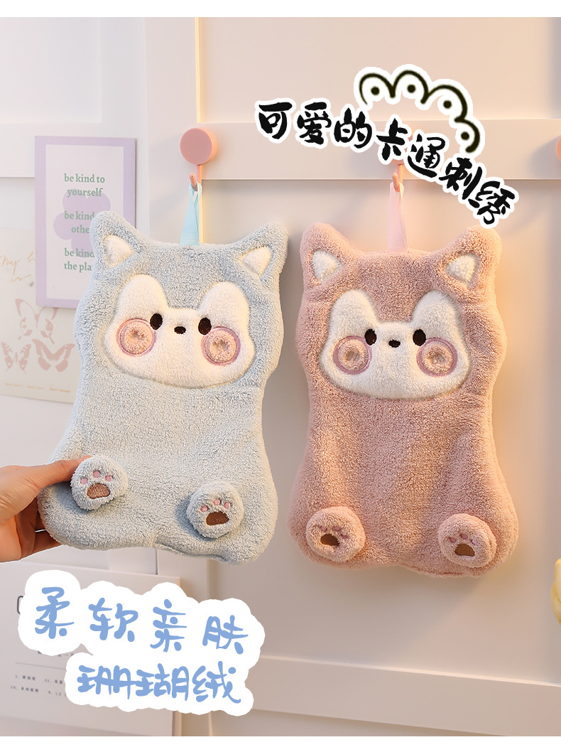猫二重拭きタオル吊り下げ式かわいいサンゴのベルベット拭きタオル吸水家庭用子供漫画タオル