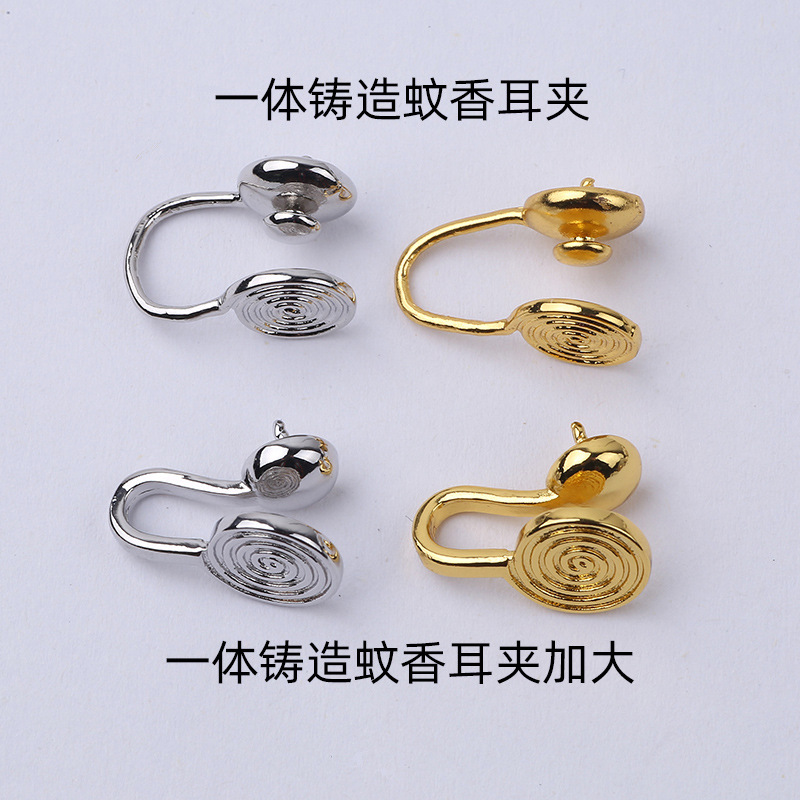 ゴールドの鋳造銅製蚊取り線香イヤークリップ 2 個 (イヤークリップパッド付き),ホワイトゴールドの鋳造銅製イヤークリップ 1 組 (イヤークリップ パッド付き),大型の金色の鋳造銅製蚊取り線香イヤークリップ 1 組 (イヤークリップ パッド付き),特大のホワイトゴールド鋳造銅製イヤークリップ (イヤークリップパッド付き)