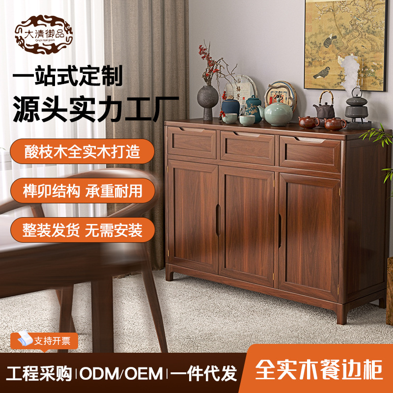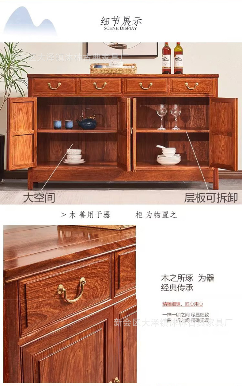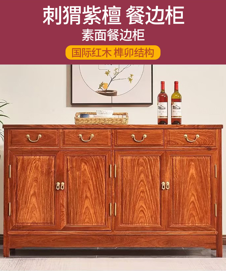 酸枝木全实木餐边柜客厅靠墙储物柜置物橱柜简约现代落地茶水柜