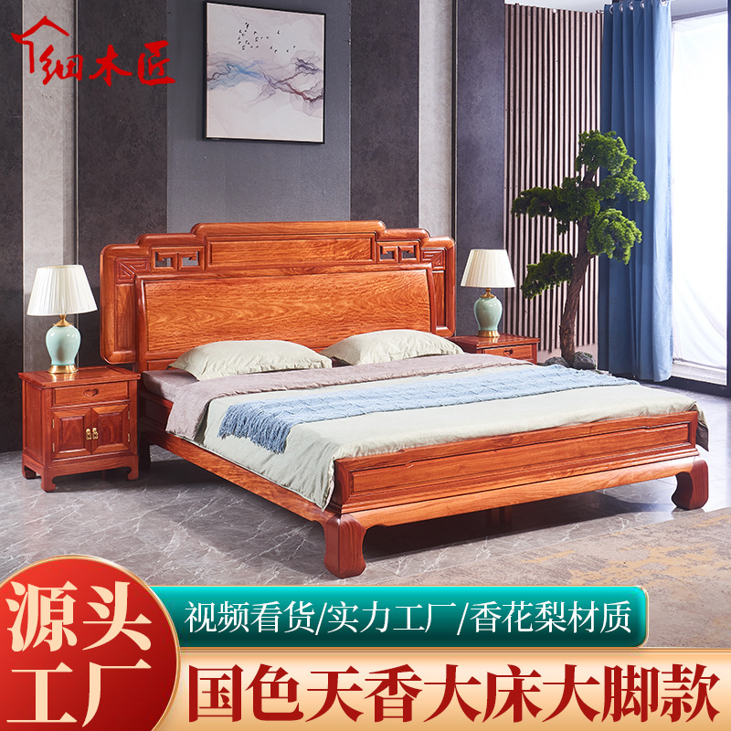 新中式大床香花梨大床双人床简约古典中式卧室床实木床家具批发