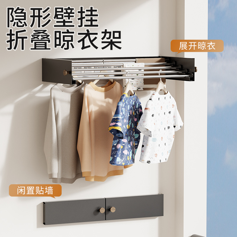 贝石隐形折叠晾衣架阳台室内壁挂晒衣神器卫生间挂衣架晾晒架收纳