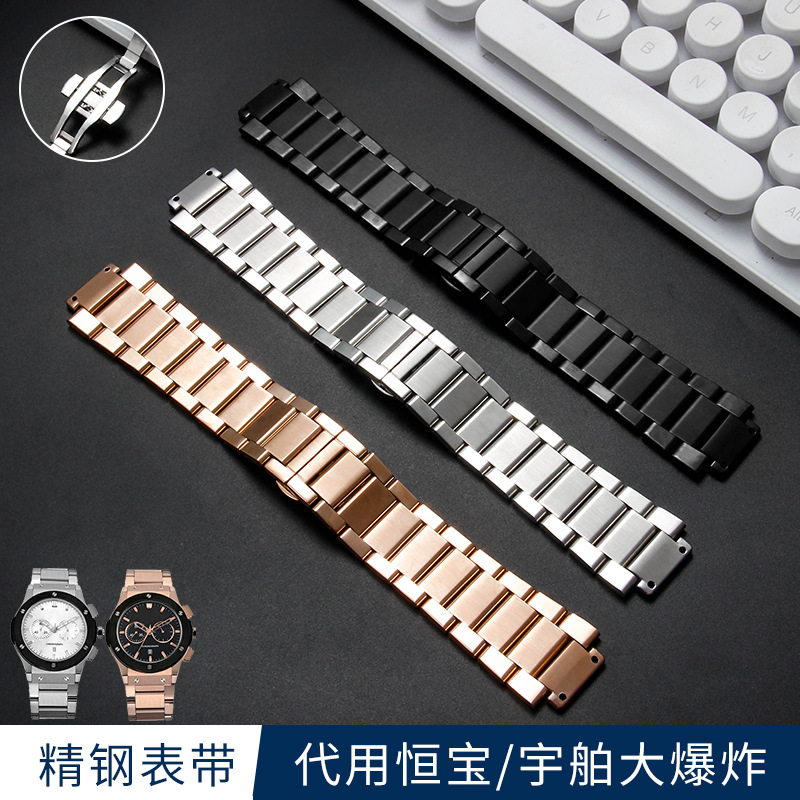 恒宝宇博精鋼バンドの古典的な融合大爆発ステンレス凸口19mm時計チェーン男性部品に適合する