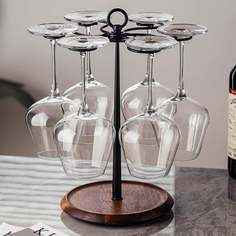 軽くて豪華なワインの杯の棚のブルゴーニュの大きい腹の杯は棚の創意の木の座の高い足の杯の棚の家庭用の酒の箱の装飾品を掛けます。