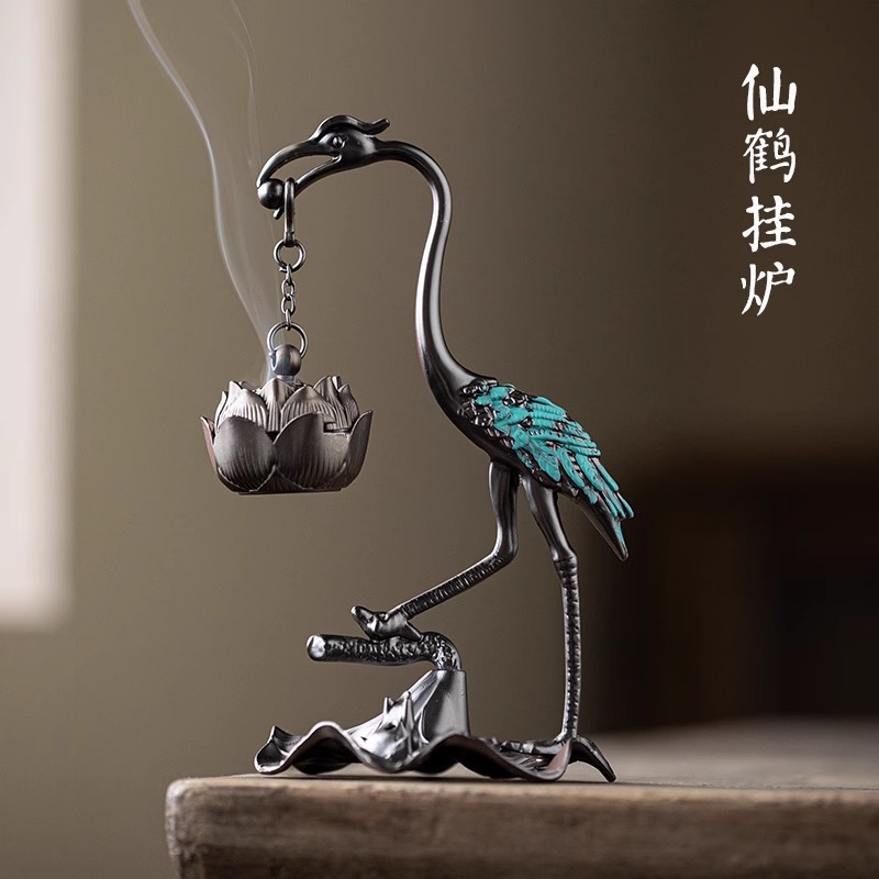 ツルの蓮の花吊り炉無粘粉小祥雲創意薫香炉レトロ合金玄関香道置物香炉