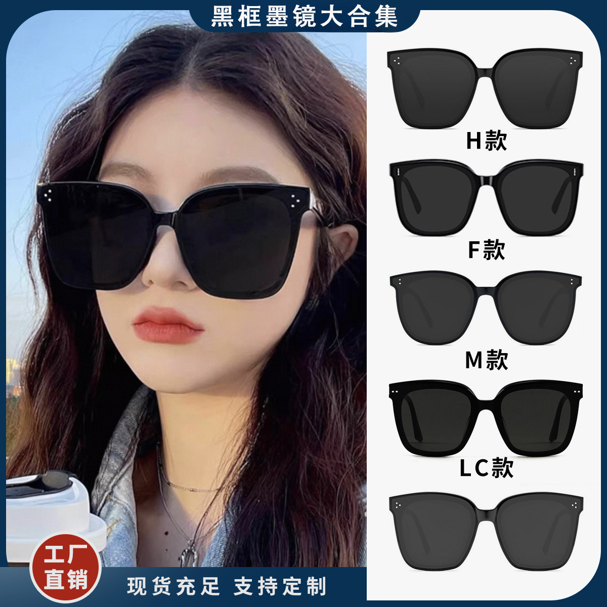 2025 新しい gm ブラック サングラス ライブ インターネット セレブと同じスタイルの韓国スタイル サングラス男性と女性のファッション大きな正方形のフレーム メガネ