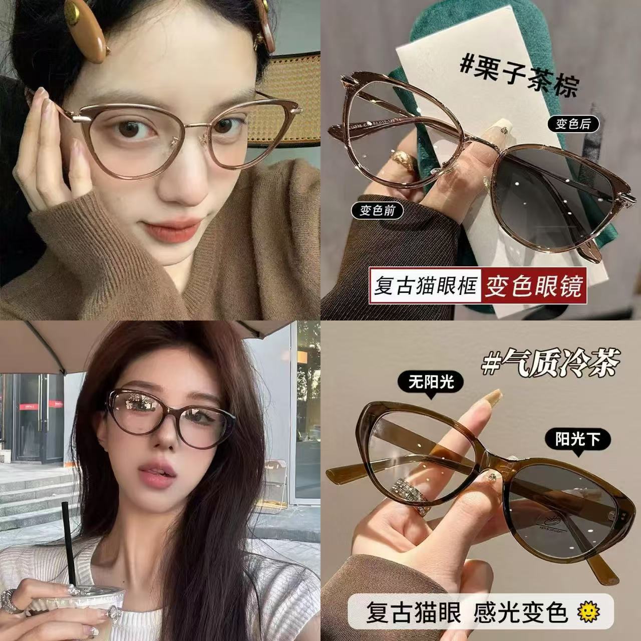 韩范复古防蓝光近视眼镜猫眼平光镜女潮流个性时尚感光变色眼镜框