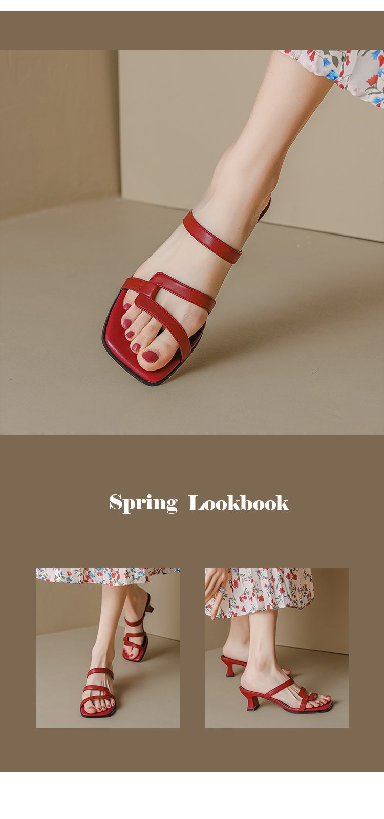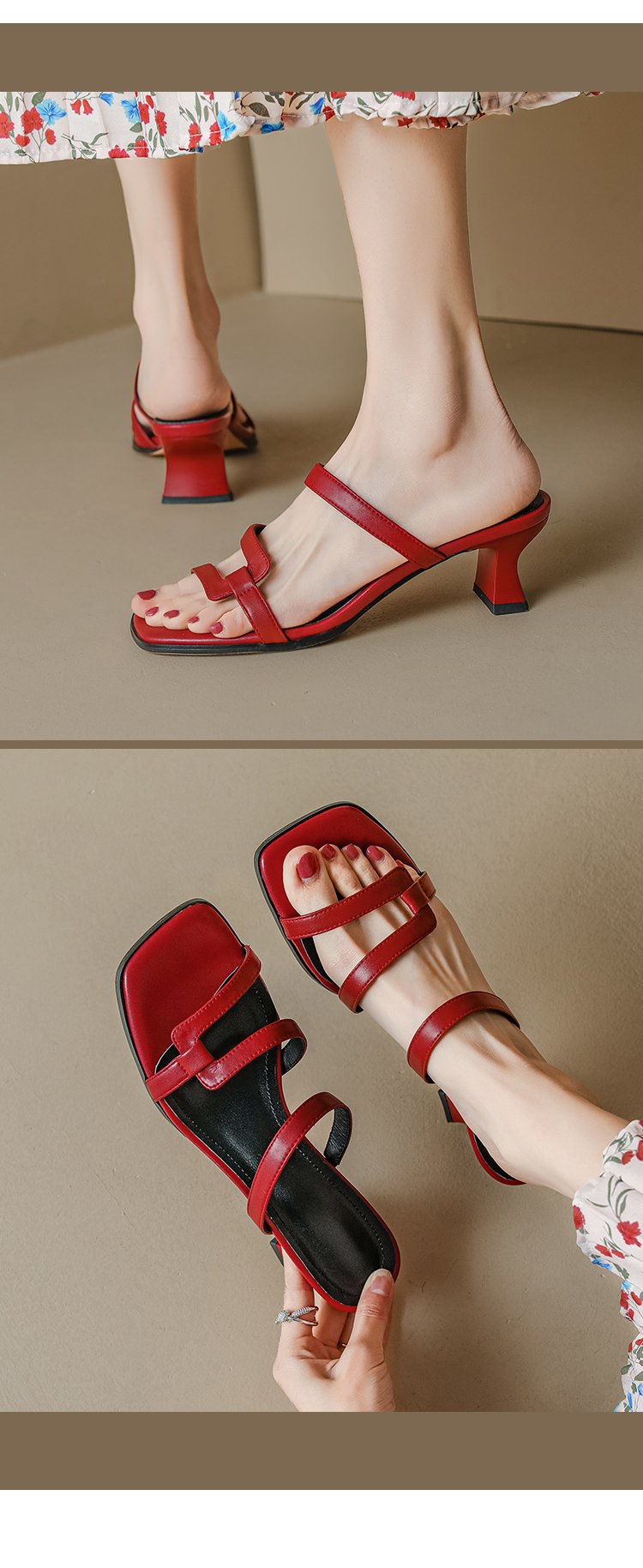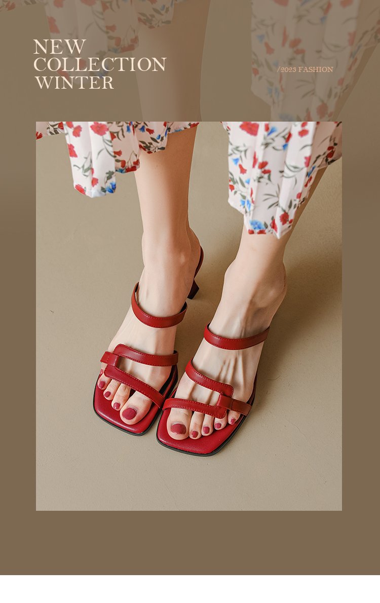 2024夏に起爆したスリッパの四角い頭red heelsファッションの涼しさとサンダルの中とslippers