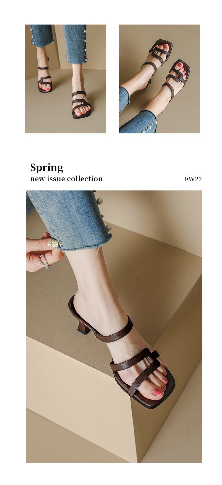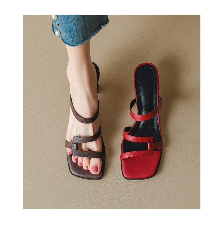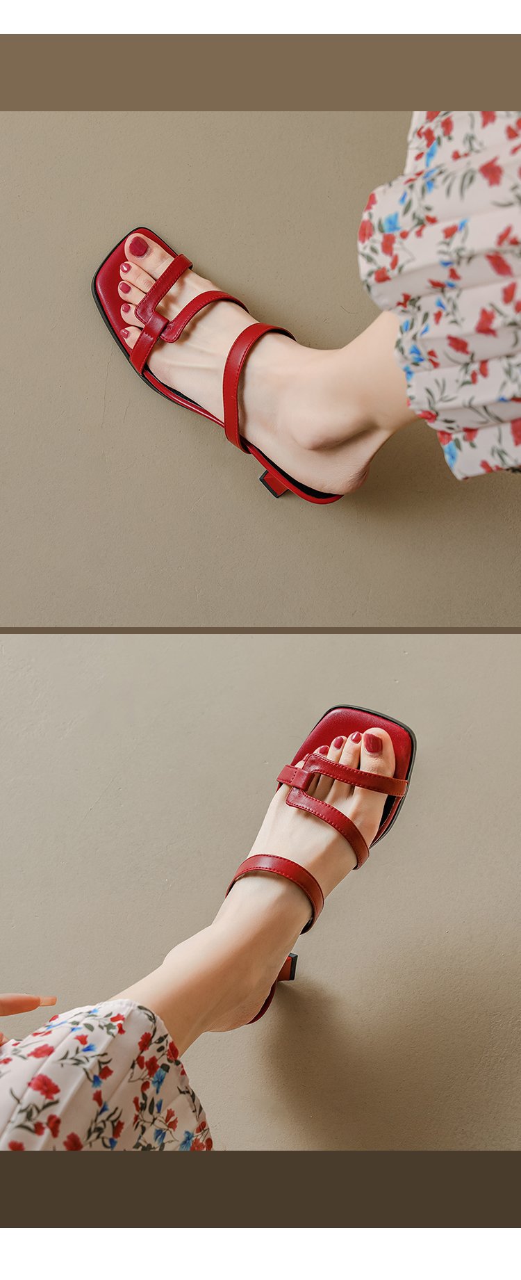 2024夏に起爆したスリッパの四角い頭red heelsファッションの涼しさとサンダルの中とslippers