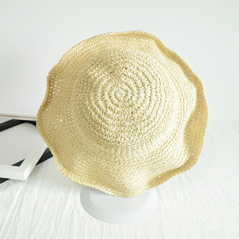 韩版可折叠手工百搭纯色手编钩针草帽子女夏季防晒沙滩度假遮阳帽