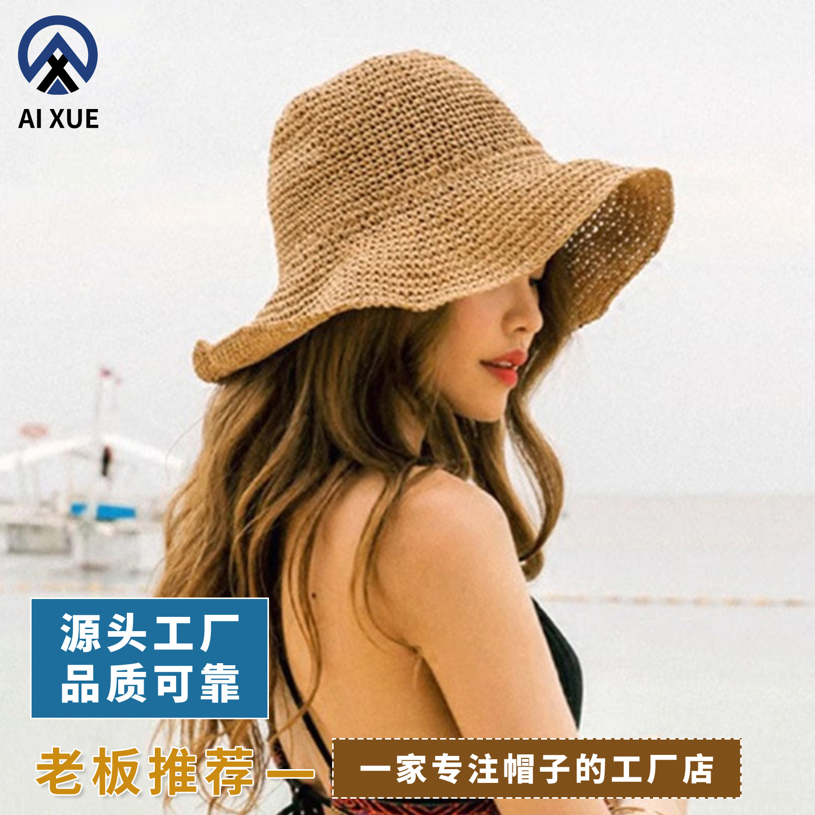 百搭可折叠草帽女夏季出游防晒遮阳帽韩版度假凉帽海边沙滩帽子潮