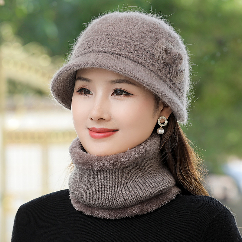 中高年の帽子の女性秋冬のウサギの毛のニットの盆栽の帽子の冬の老人のお母さんの帽子のおばあさんの帽子のマフラーのスーツ