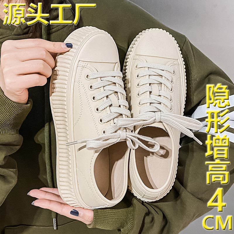 2024 新しい厚底小さなビスケットシューズ女性の本革多用途白靴スポーツとレジャー身長増加スニーカーシングルシューズ
