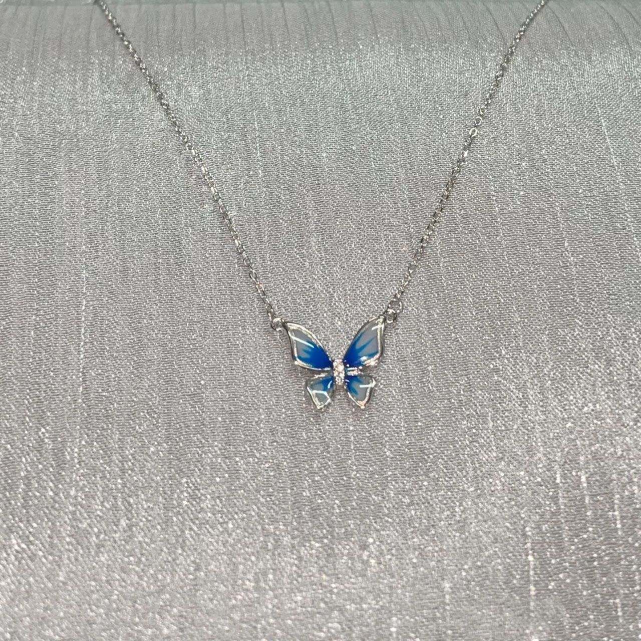 ブルーグラデーションバタフライネックレスレディースファッションライトラグジュアリータンプル多用途ハイエンドフェアリースタイルコールドスタイル鎖骨チェーン
