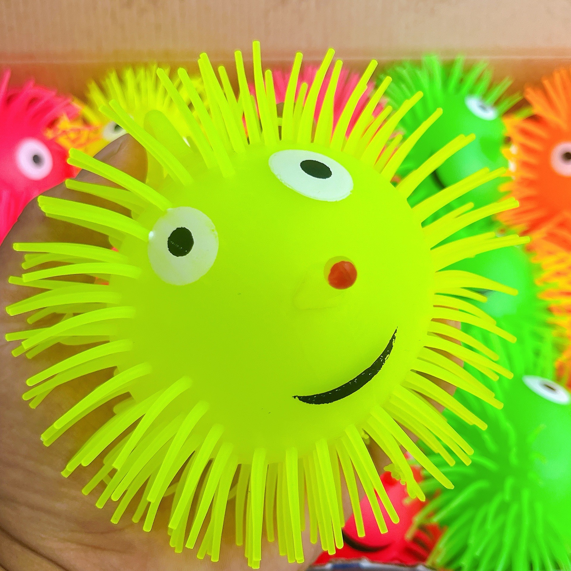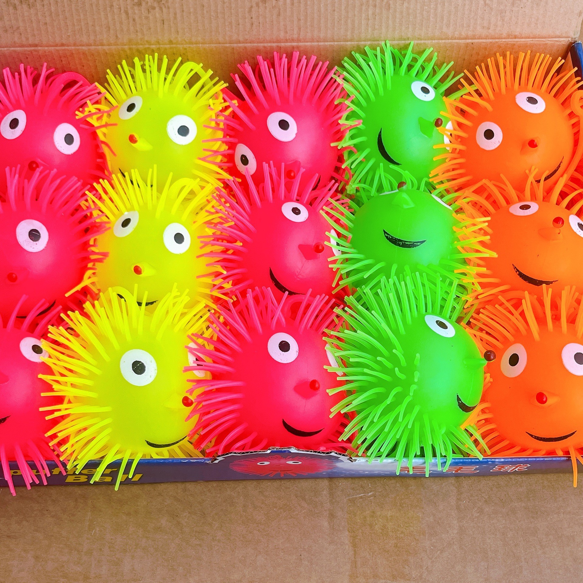 15個の箱の中の発光のおもちゃの大きいサイズの毛玉の毛虫のハリネズミの弾力の閃光のボールのおもちゃの卸売り