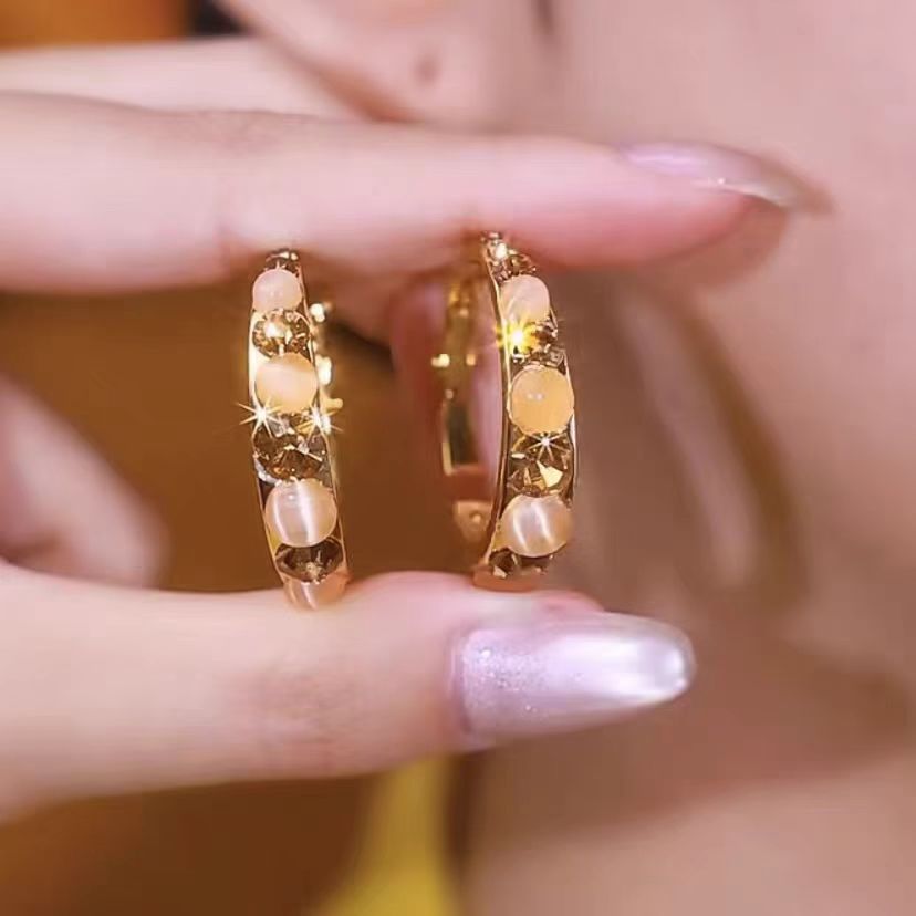 2025年新款潮复古百搭气质猫眼石圈圈耳环女925银针精致简约耳扣