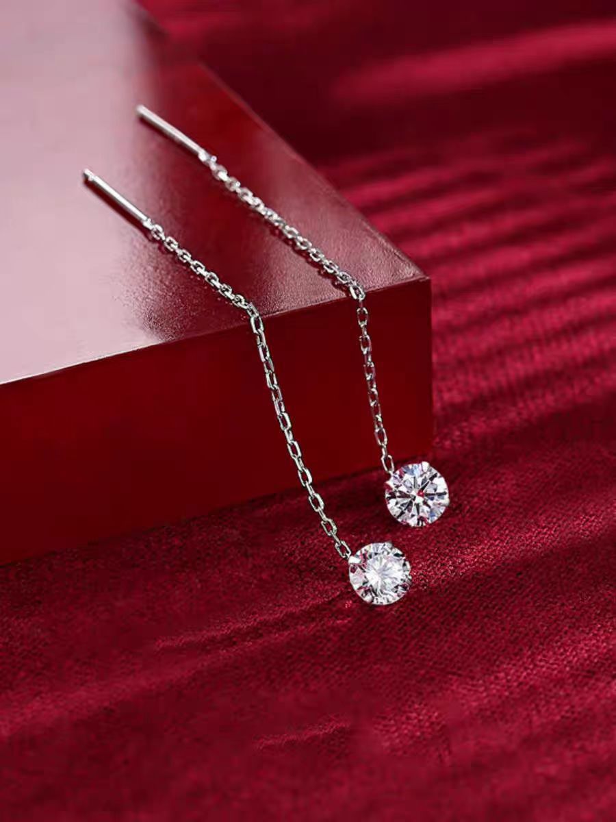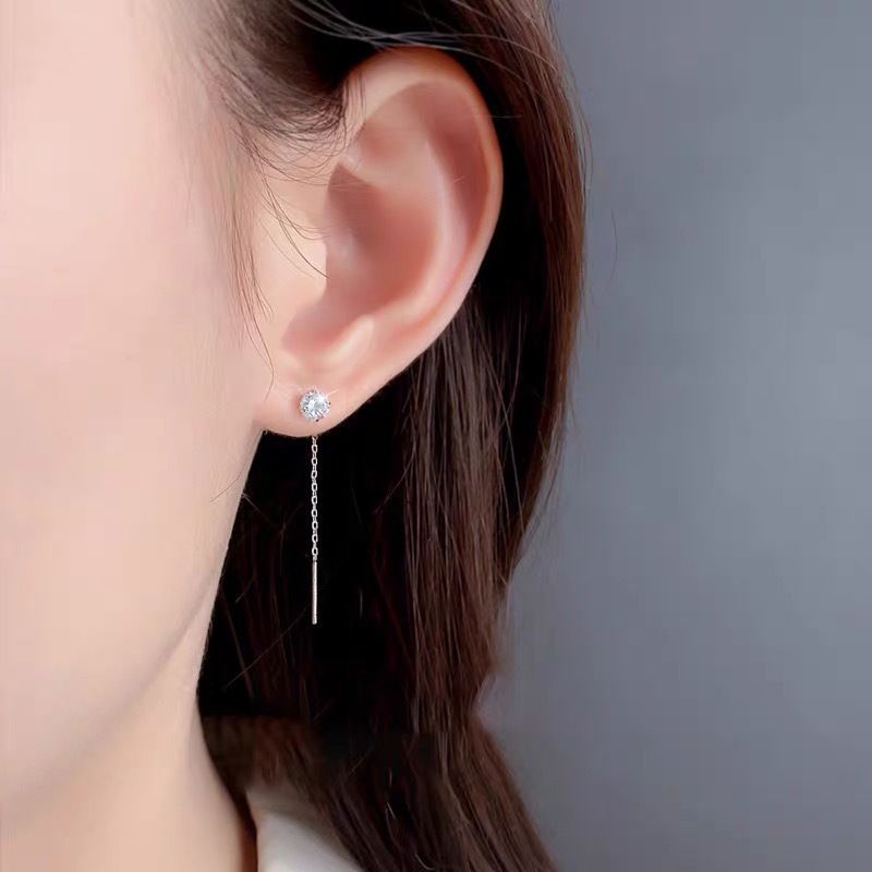 925银闪钻耳线女养耳洞耳钉2025新款耳环耳坠气质高级感耳饰女