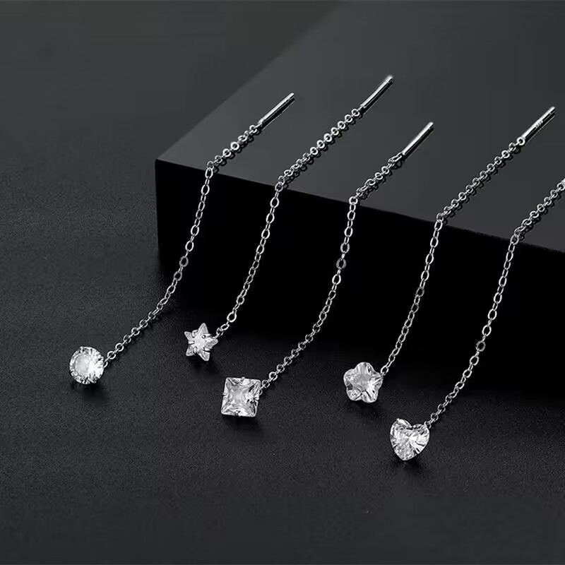 2025新品四爪锆石耳线气质几何流苏长款耳线时尚镶钻轻奢高级感女