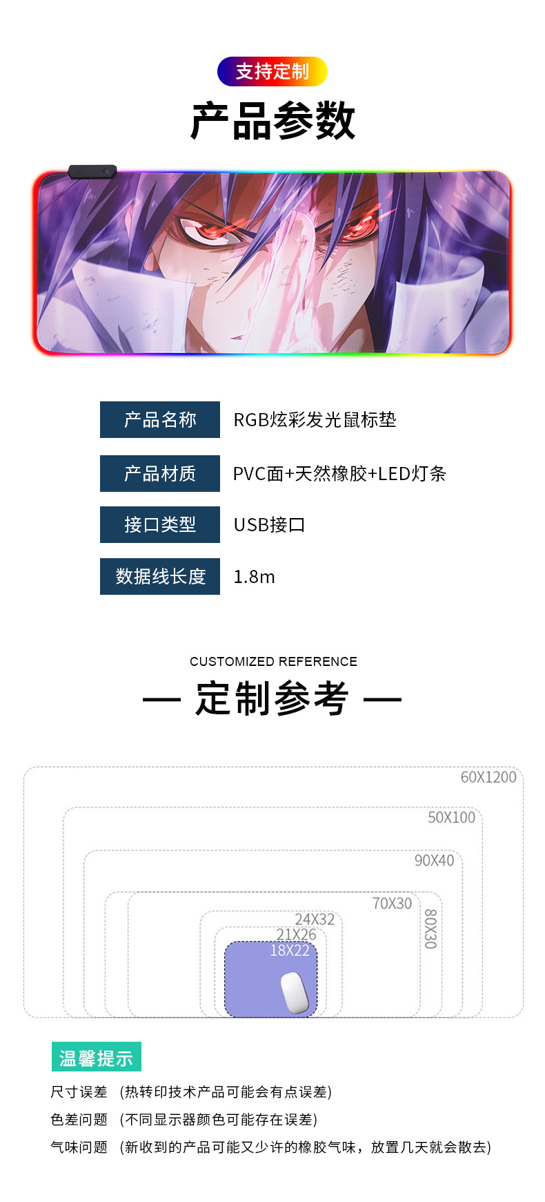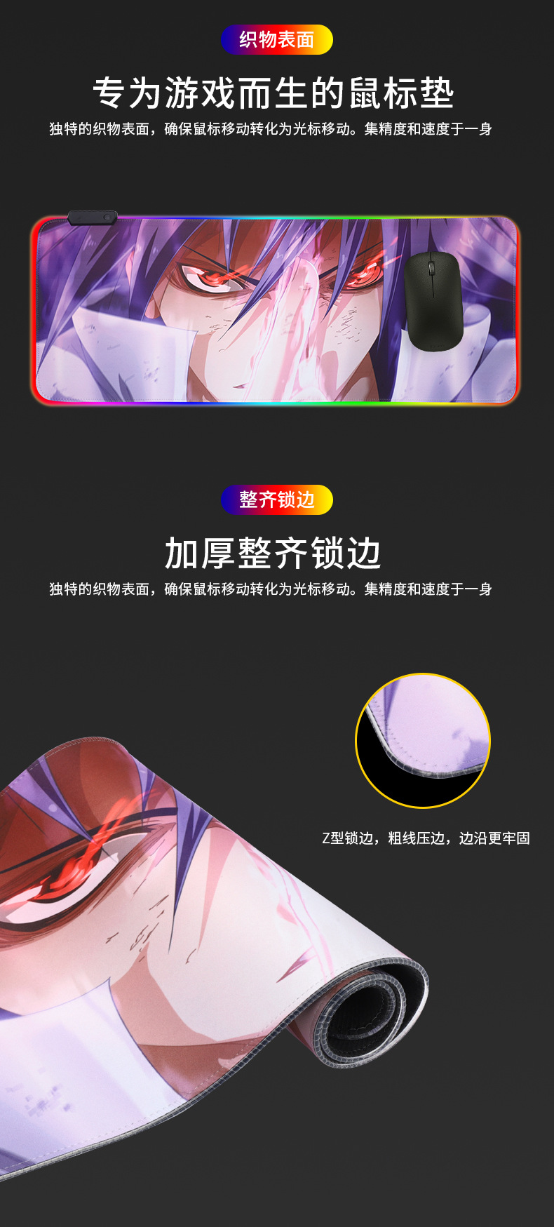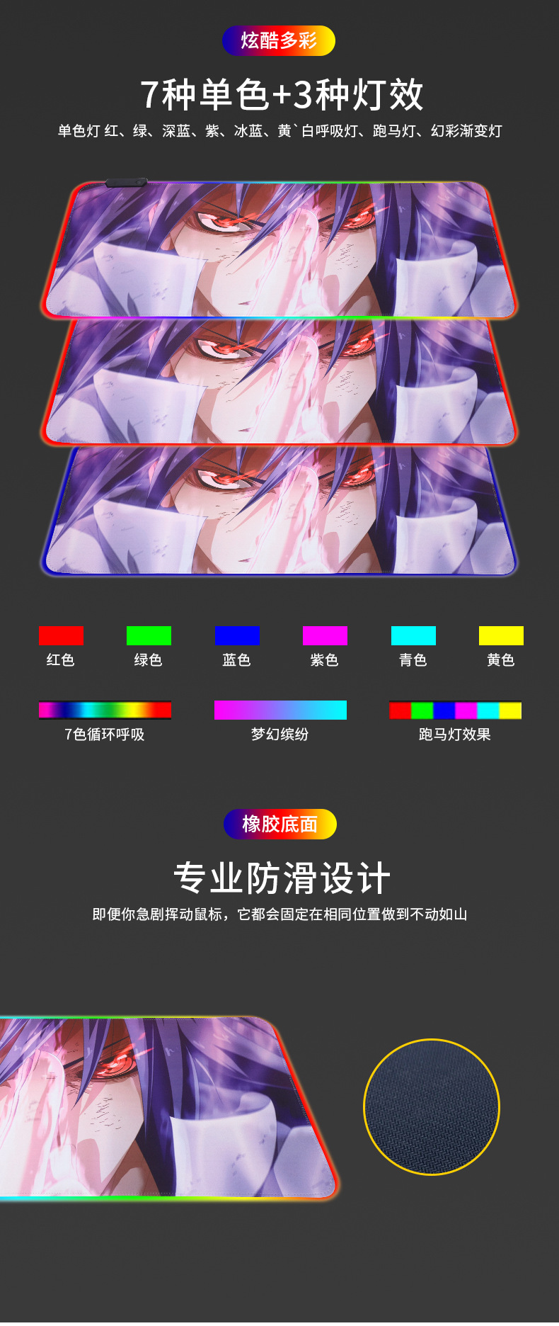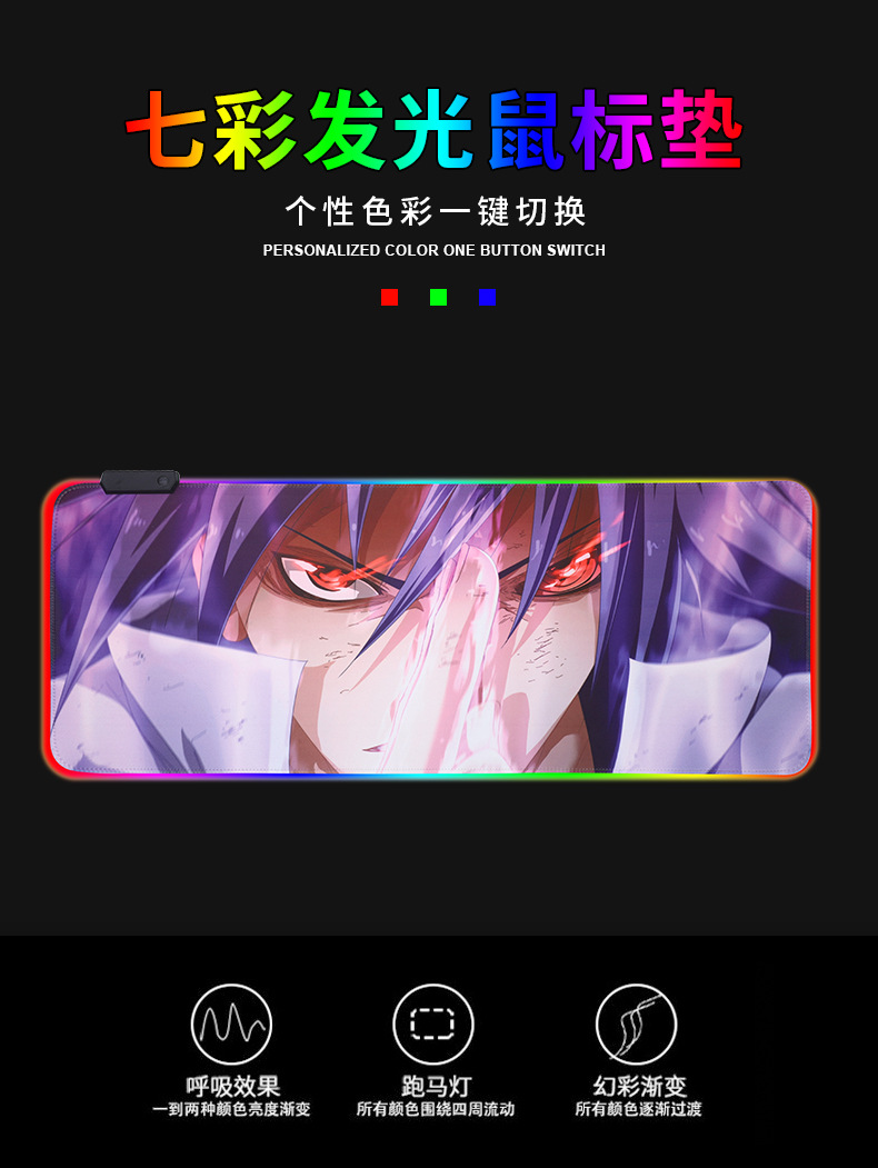 メーカー直供発光マウスパッド七色ランプ効果ゲームキーボード机パッドアニメマウスパッド卸売り
