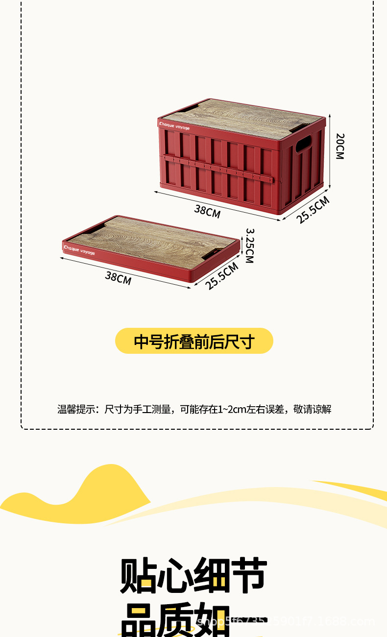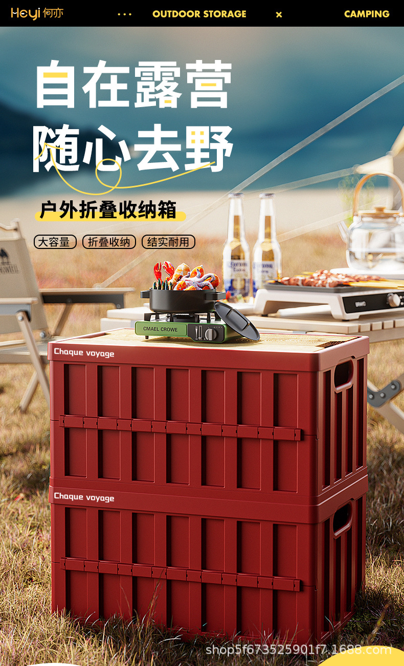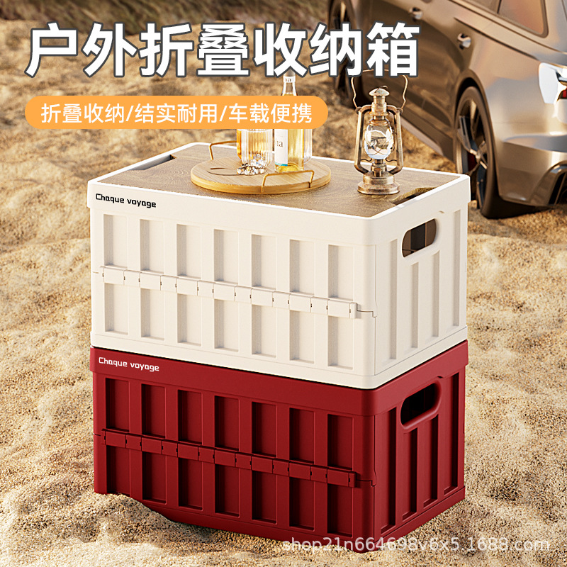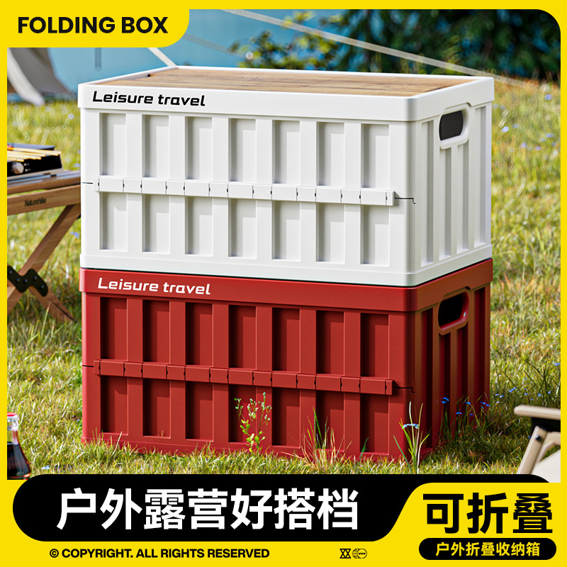 户外露营后备箱储物箱车载木盖折叠收纳箱大容量野营整理箱便携