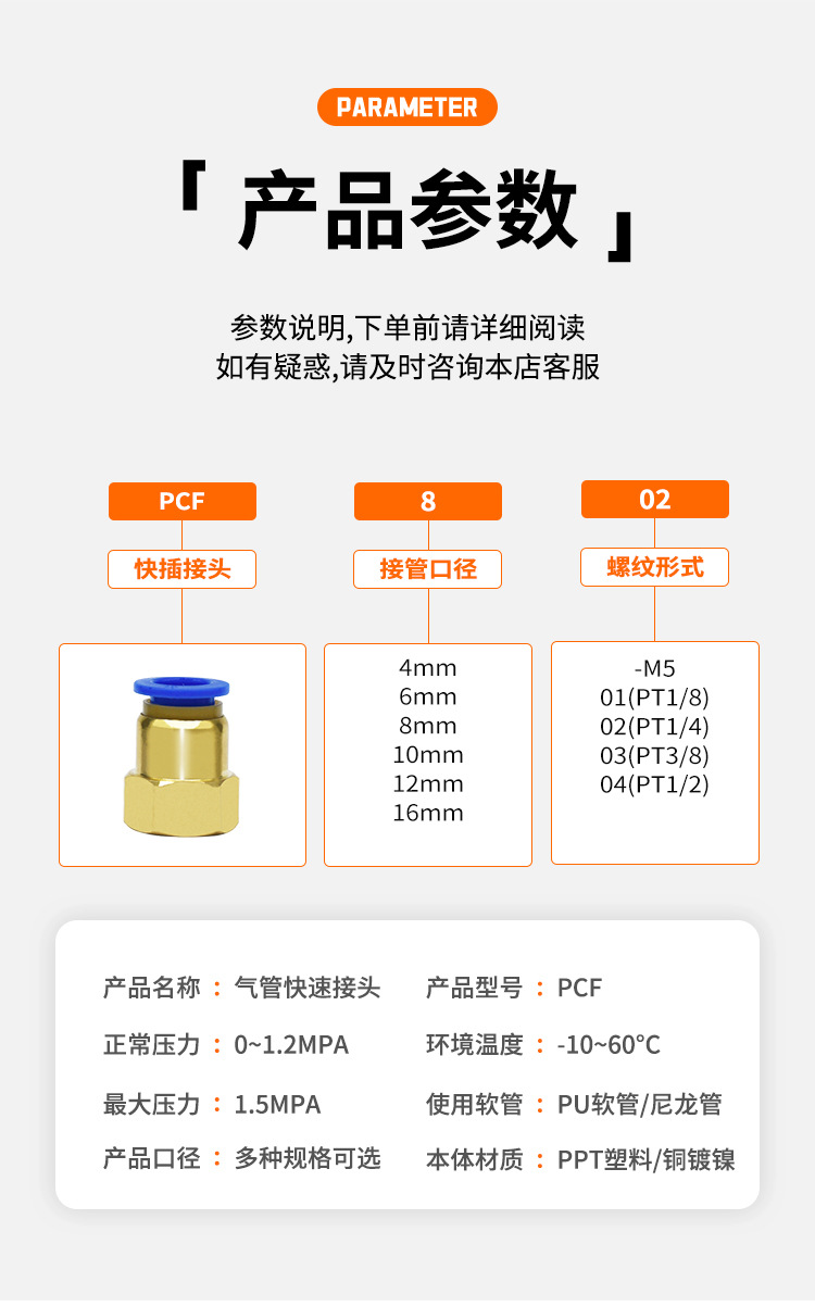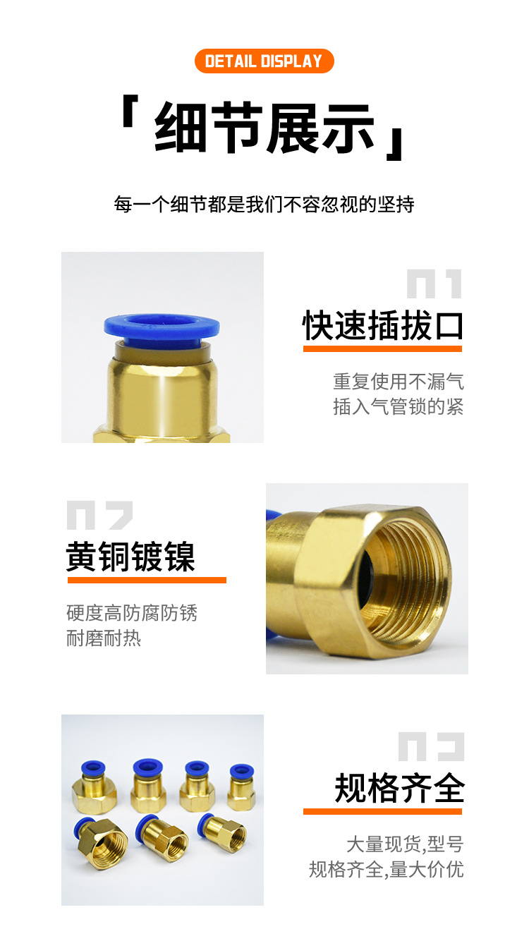 空気圧機器ブルーPC気管クイック継手PC8-02ねじストレートクイックプラグ4mm/10/12/16-03