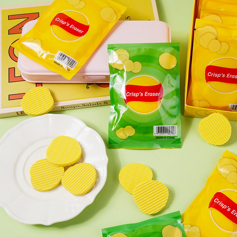 新款创意袋装薯片造型橡皮擦干净无屑学生文具文创小礼品奖品好用