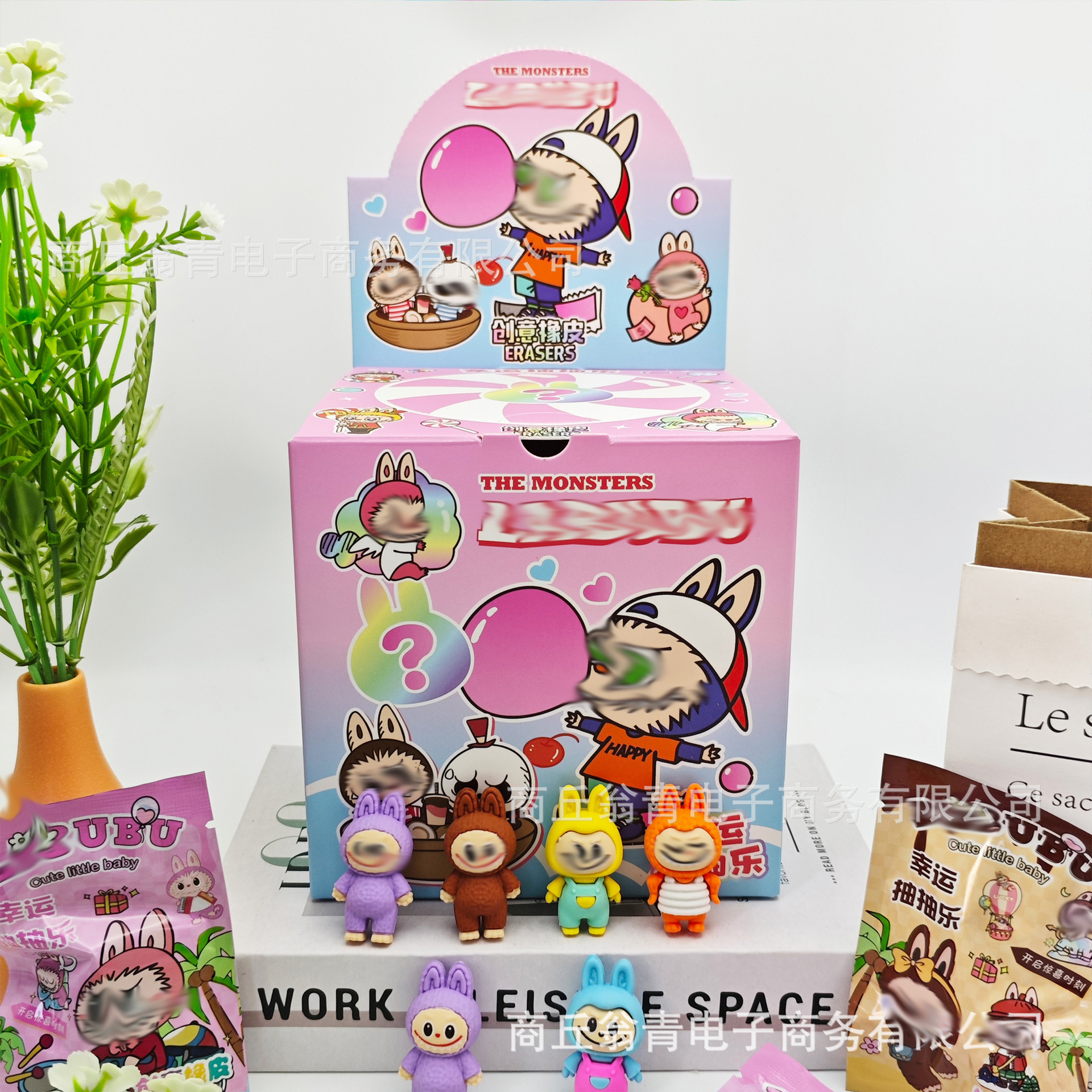 跨境爆款啦布布盲袋橡皮擦卡通幸运抽抽乐盲盒可拆卸立体造型橡皮