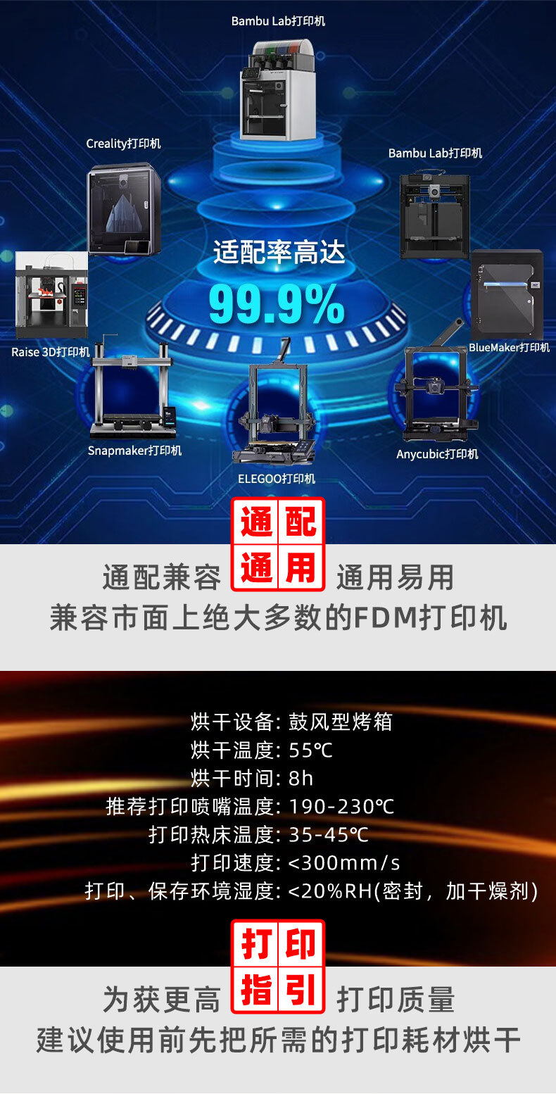 彩多屋PLA高亮仿金属色3D打印耗材200克1.75mm拓竹/创想适用线材