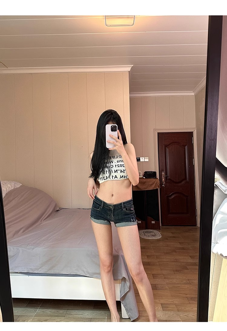 辛いデニムの半ズボンの女性2025夏のギャルのアメリカのレトロな包みの尻の低い腰の熱いのはやせている超短いズボンを現します。