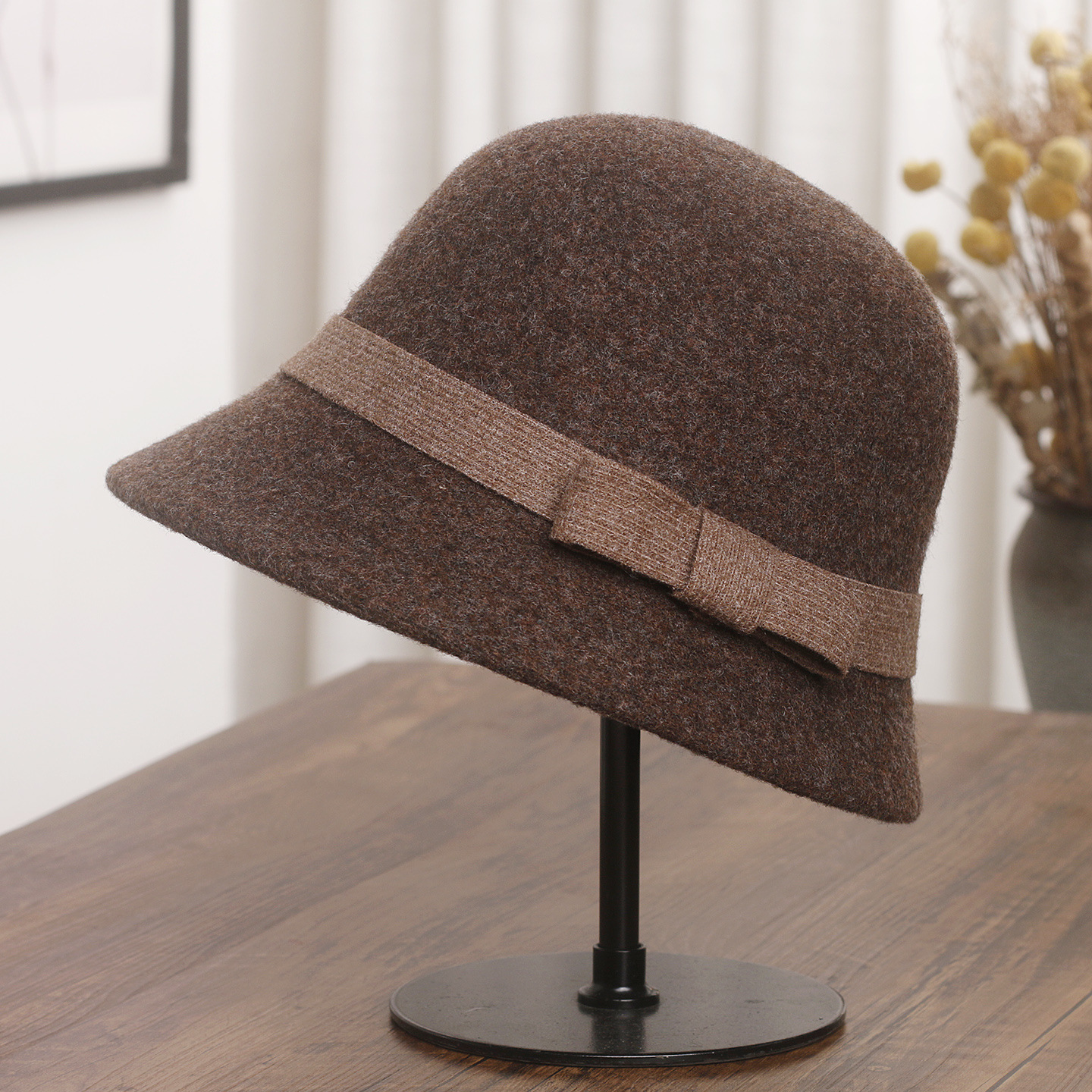 羊毛呢渔夫帽子女秋冬蝴蝶结气质复古保暖盆帽显脸小赫本百搭礼帽
