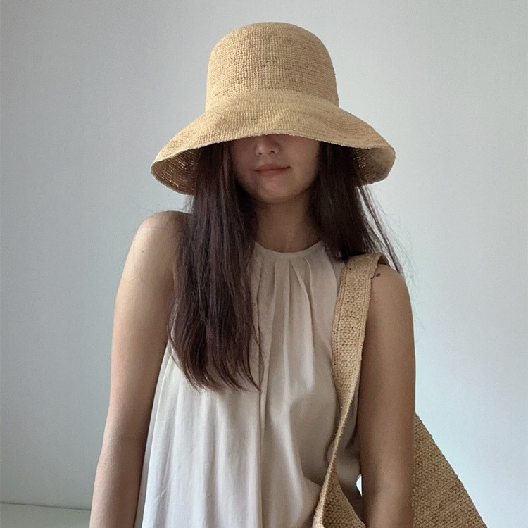 ミニマリスト日焼け止めラフィア帽子 9-10 センチメートルつばライトプレート春と夏の抗 UV 細いラフィア漁師帽子女性のための