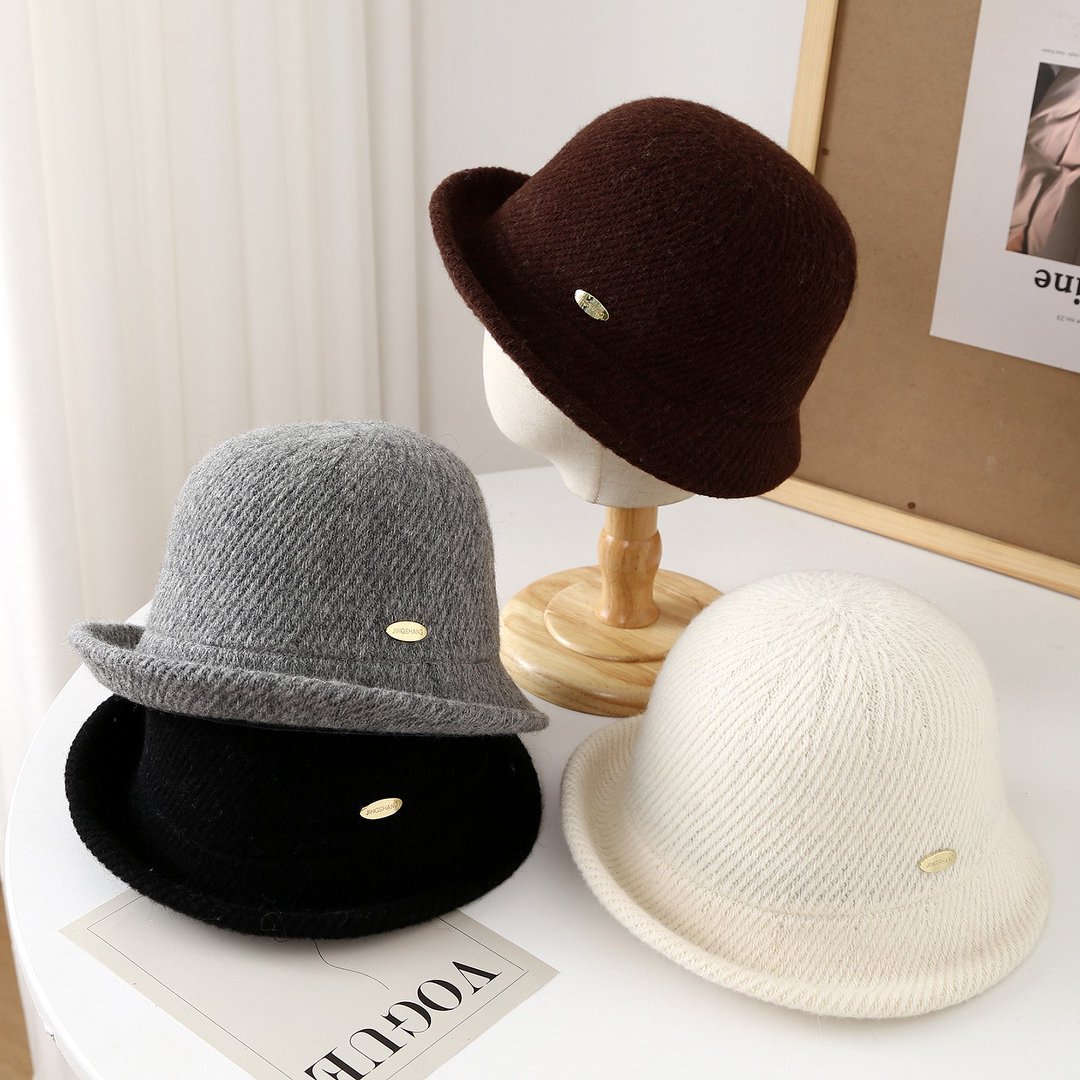 帽子女秋冬新款针织羊毛盆帽女韩版百搭显脸小卷边渔夫帽