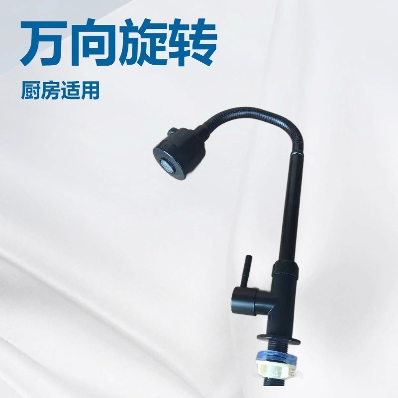 外国貿易プラスチック鋼ラウンド水平シングル冷菜シンク壁洗面器蛇口黒ユニバーサル回転蛇口