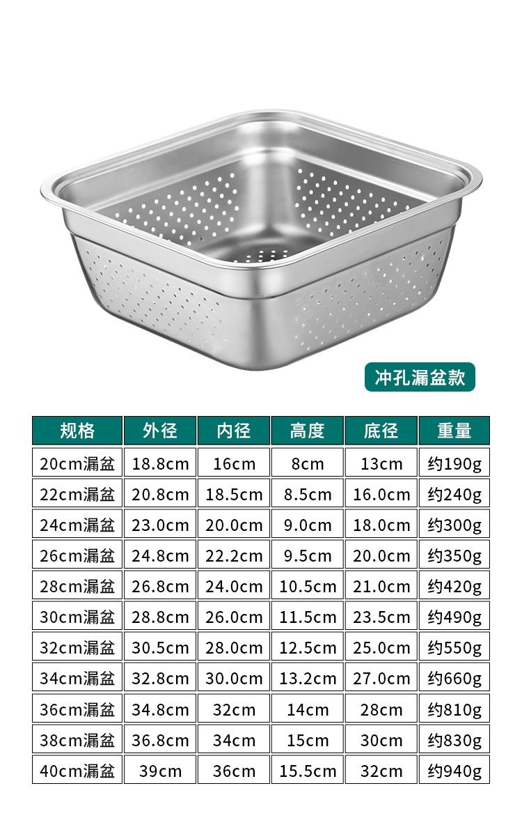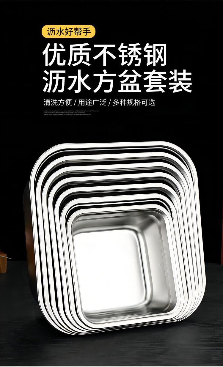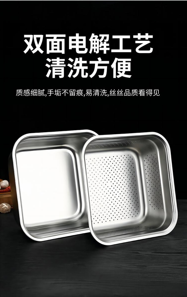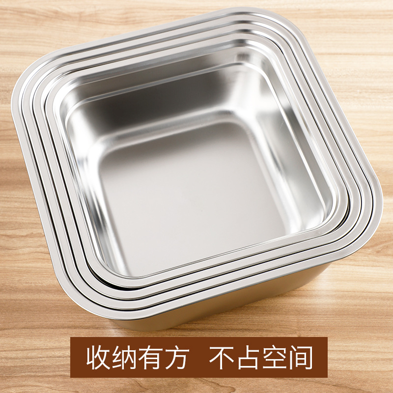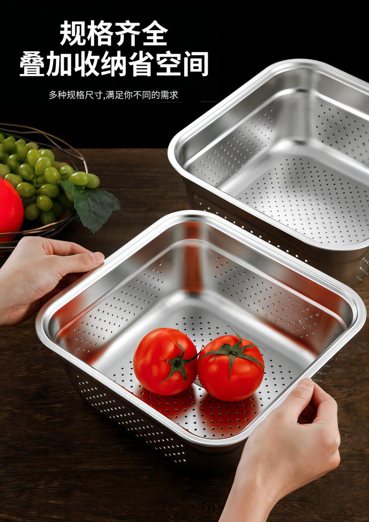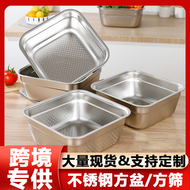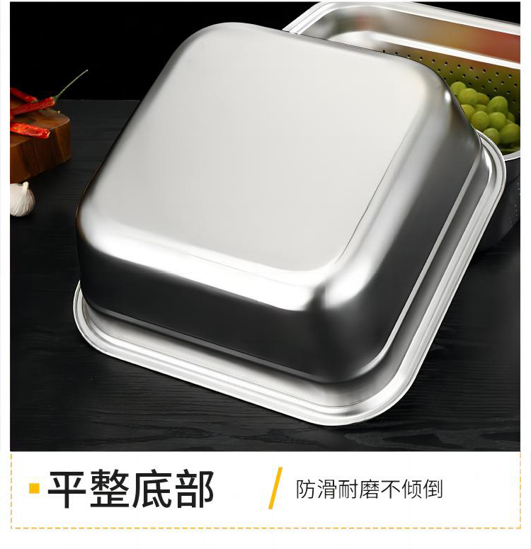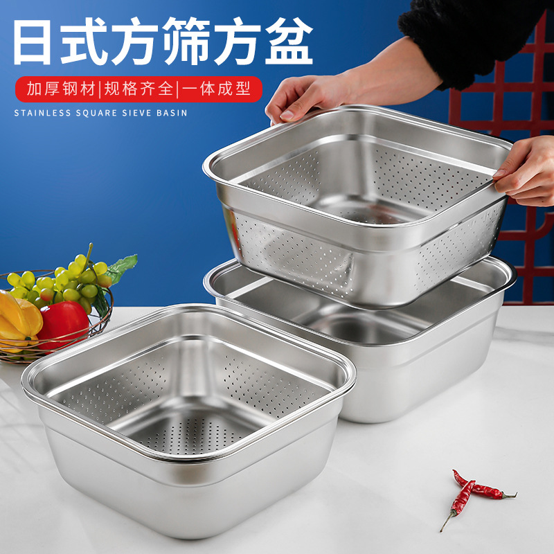 日式不锈钢方盆自助餐加深方盘快餐菜盆份数盆方盒滤盆洗菜沥水篮