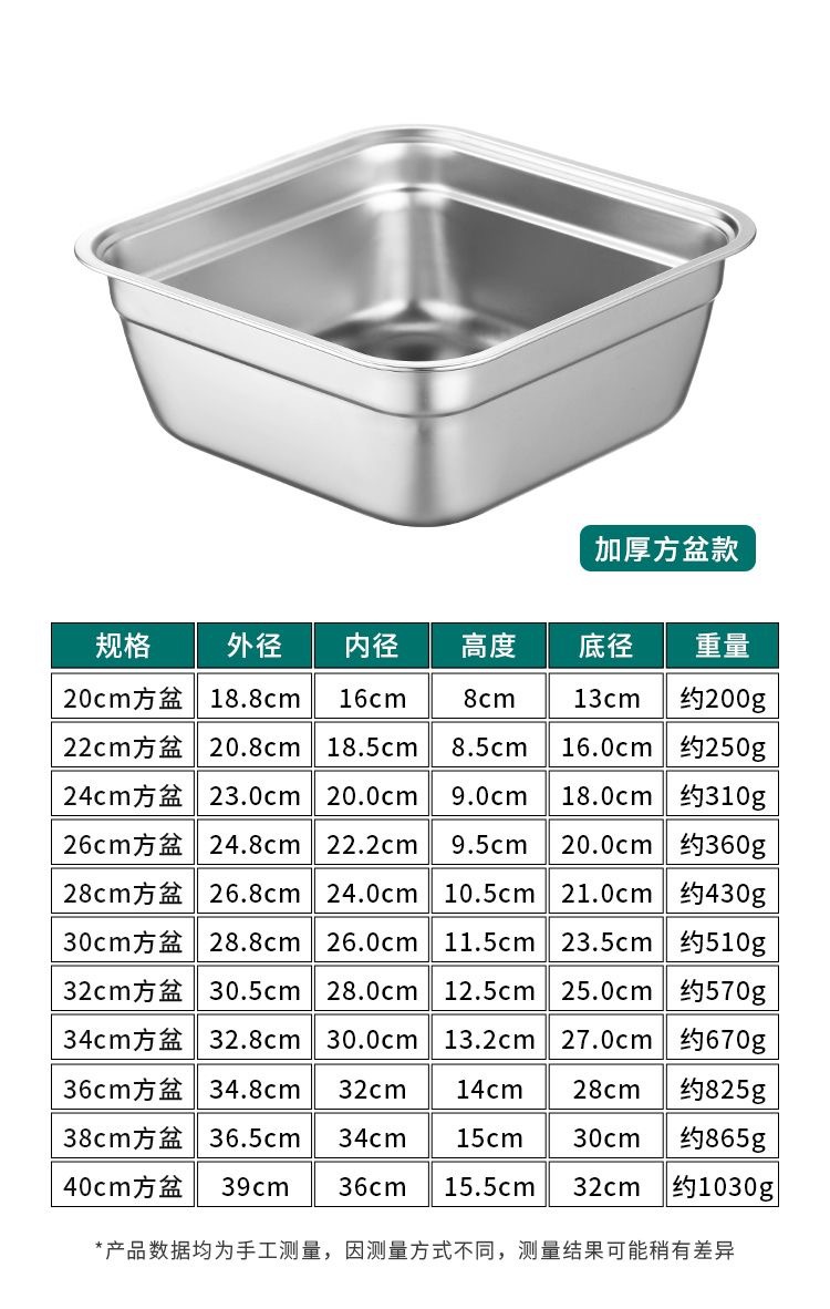 不锈钢份数盆方盒滤盆洗菜沥水篮方盆自助餐加深方盘快餐菜盆