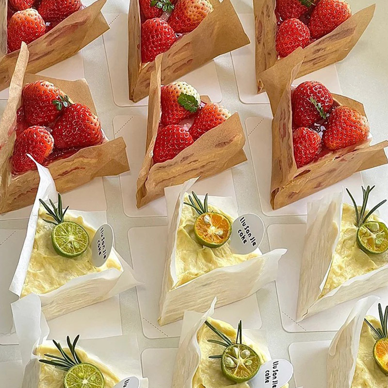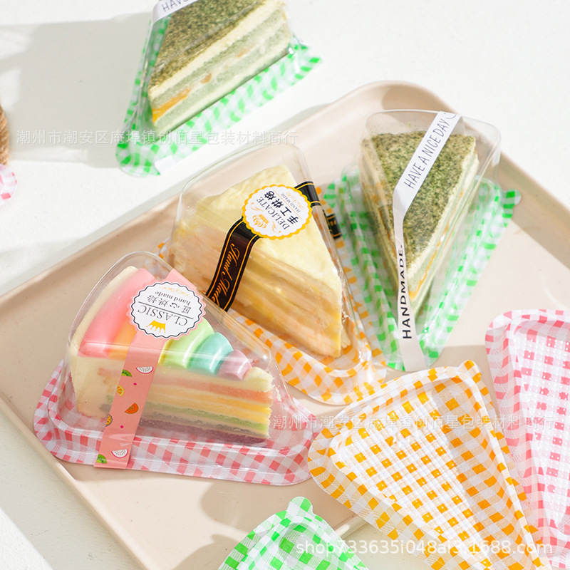 色の三角形のケーキの箱の6インチの8寸のドリアンの千層のムースのデザートのカットのティラミスのカットの包装箱