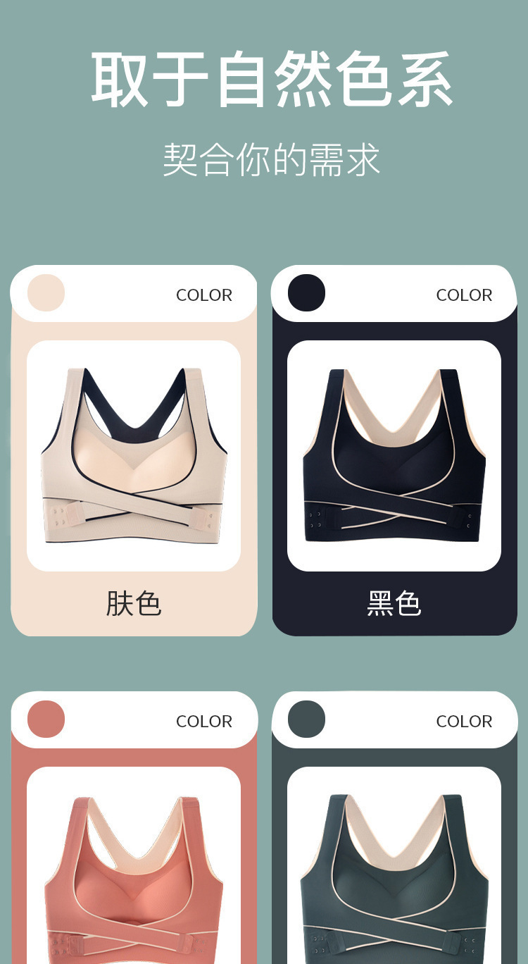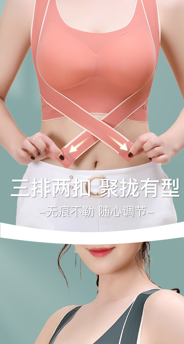 前側ボタン無痕スポーツ下着防震女性フィットネスヨガ集美背矯正調整型スポーツブラジャー女性