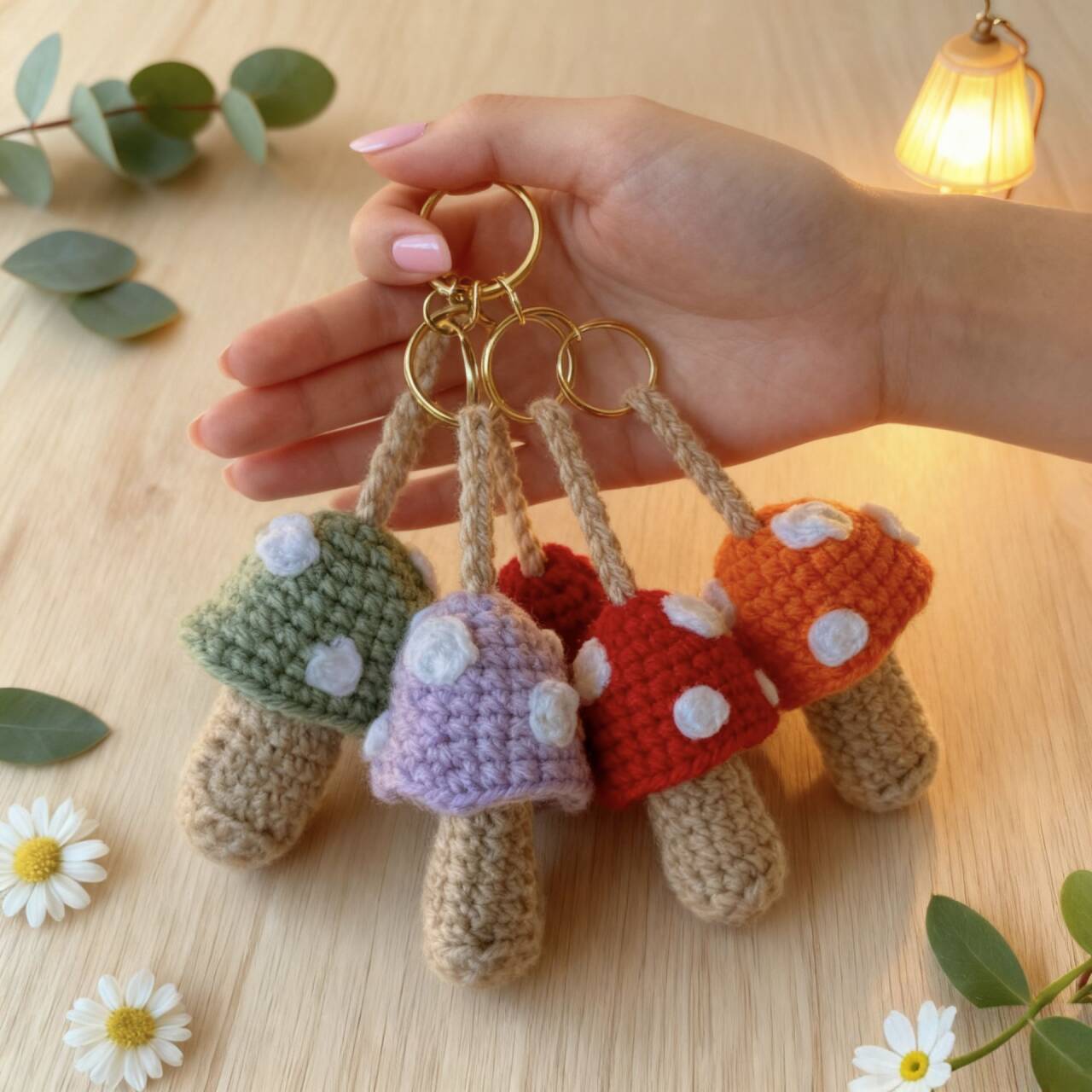 アマゾンクロスボーダー新品純粋手作りニット口紅収納バッグきのこ掛け飾り可愛いファッション創意ペンダント
