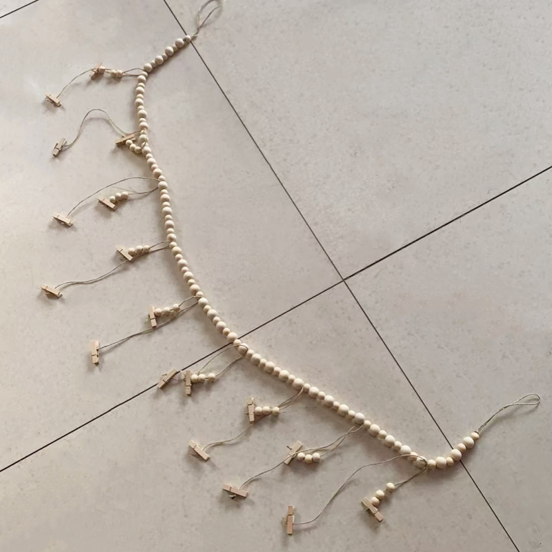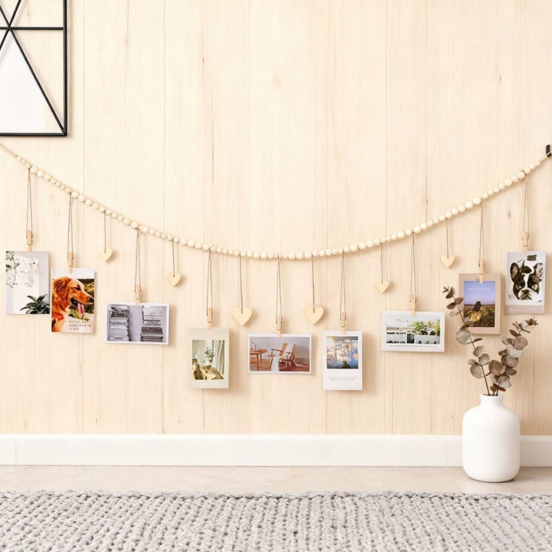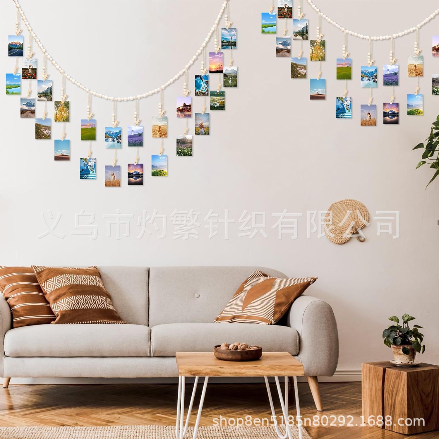 2025国境を越えた新しい木珠写真二重収納展示麻縄ビーズクリップ付き家庭壁掛スポット