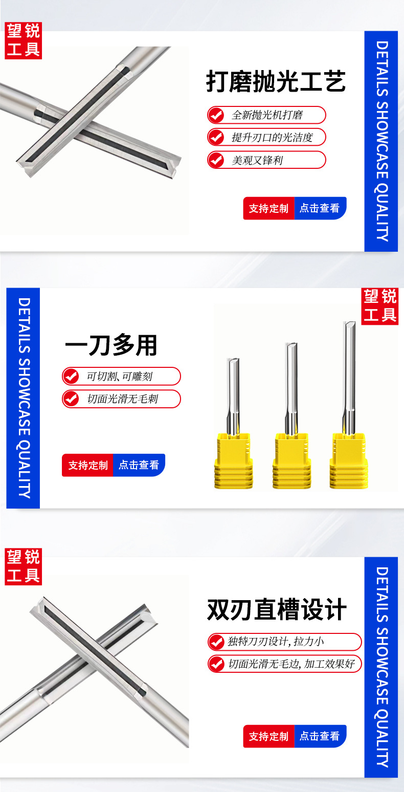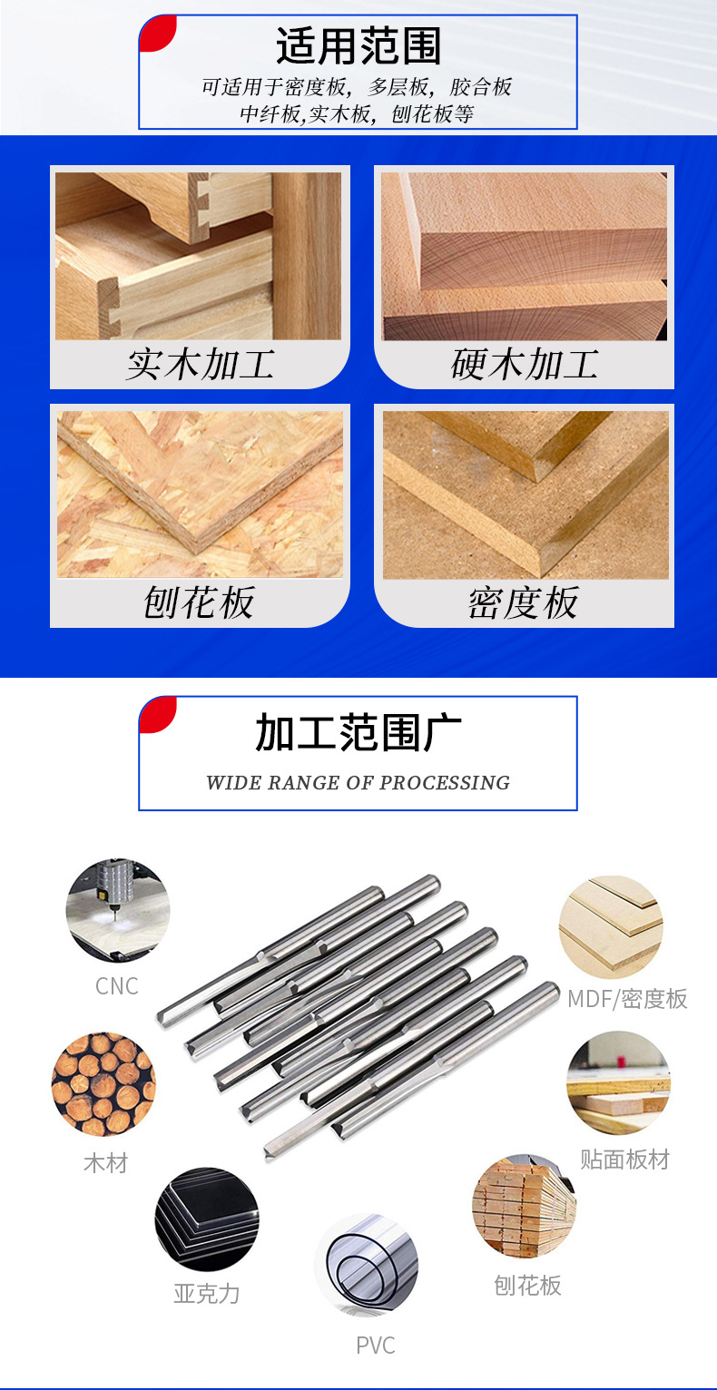 跨境工厂3.175mm-12mm板材切割硬质合金木工直刃铣刀双刃直槽铣刀