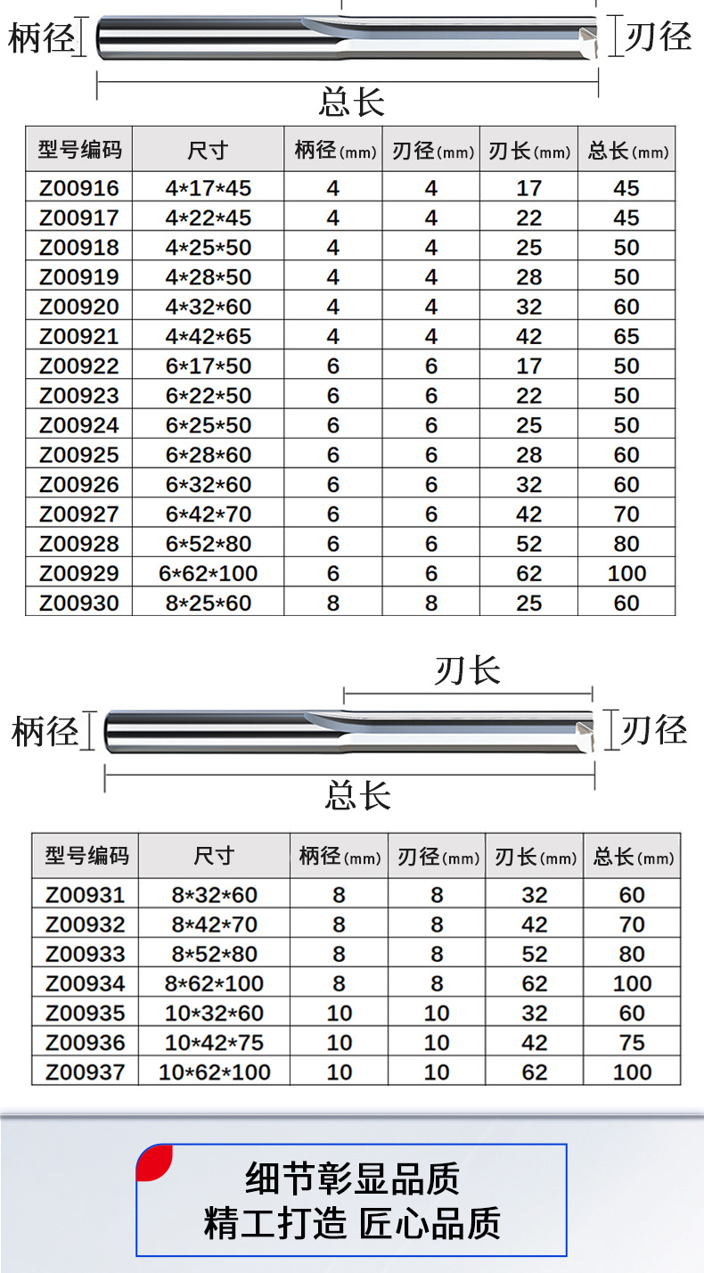双刃直槽钨钢铣刀 亚克力数控机床雕刻机木工刀具雕刻刀