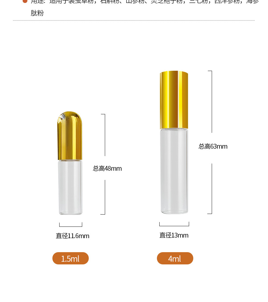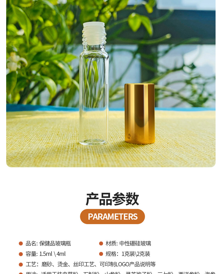 健康食品ガラス瓶1グラム2グラム鹿茸粉山参粉石gok粉虫草粉ガラス包装漢方薬粉瓶